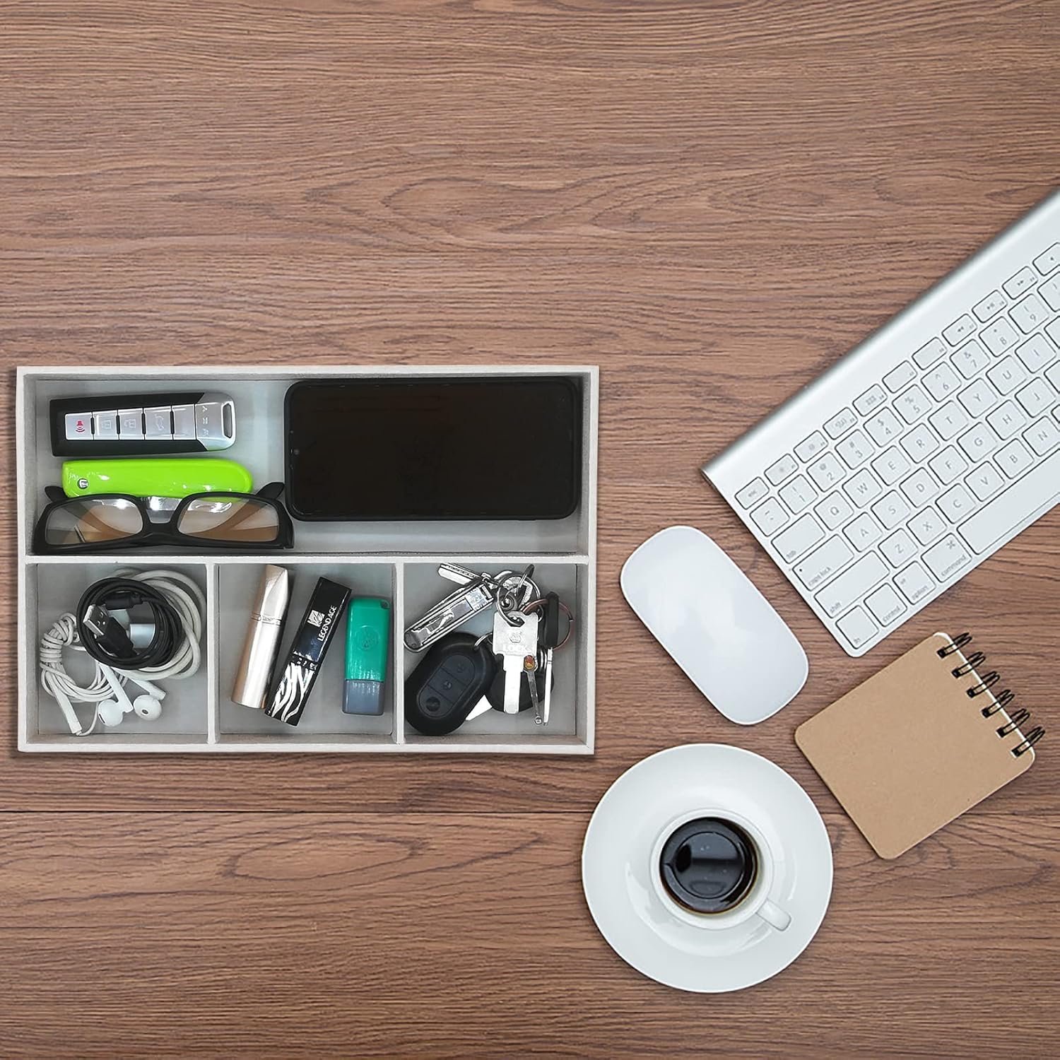 - [Perfect design] 4 compartments, better classification and protection of accessories. The right size will not take up your extra space. Therefore, you donโt need to waste a lot of time searching for misplaced items. Make your space more tidy and orderly. The perfect daily tray, suitable for your desk, bedside table, dressing table, entrance hall, side table, etc.