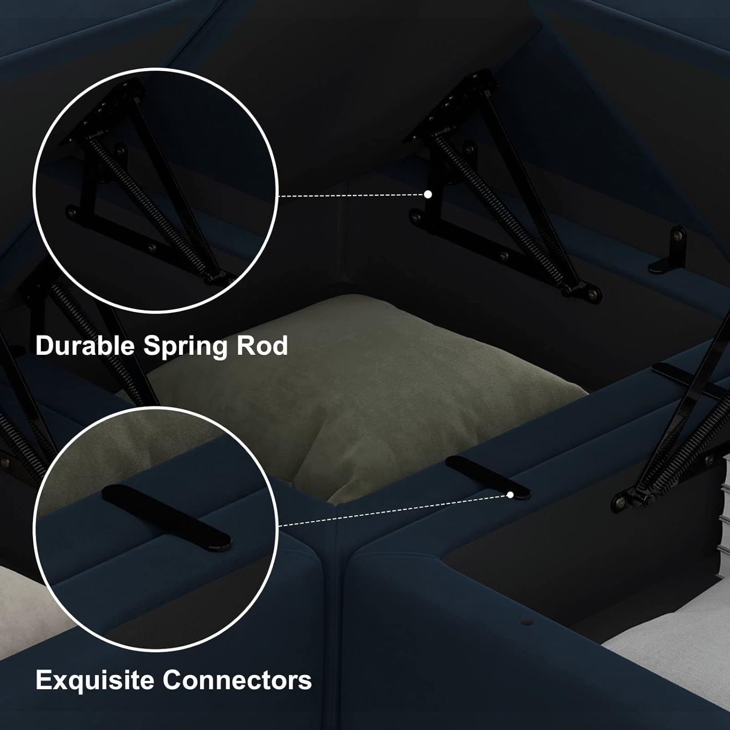- Space-saving Storage Seat: The storage seat of modular sectional sofa can work as an ottoman, or a table, or even a big storage as needed. You can place the magazine, VCDs and other idle items. This bonus storage space will save spaces and complement the existing interior design. Storage dimensions: 22.40''(L)*22.40''(W)"*5.70"(H)