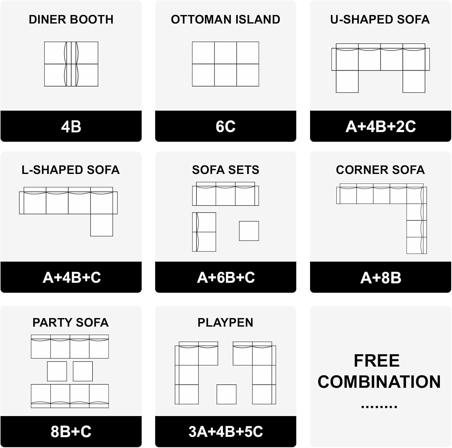 - Multi-functional Modular Sofa: This modular loveseat sofa has multi-function versatile use, which can be easily and quickly converted into countless forms. Each seat of modular sectional sofa has a hidden storage, and you can put away children’s toys or pillows. Storage dimensions: 22.40''(L)*22.40''(W)"*5.70"(H).