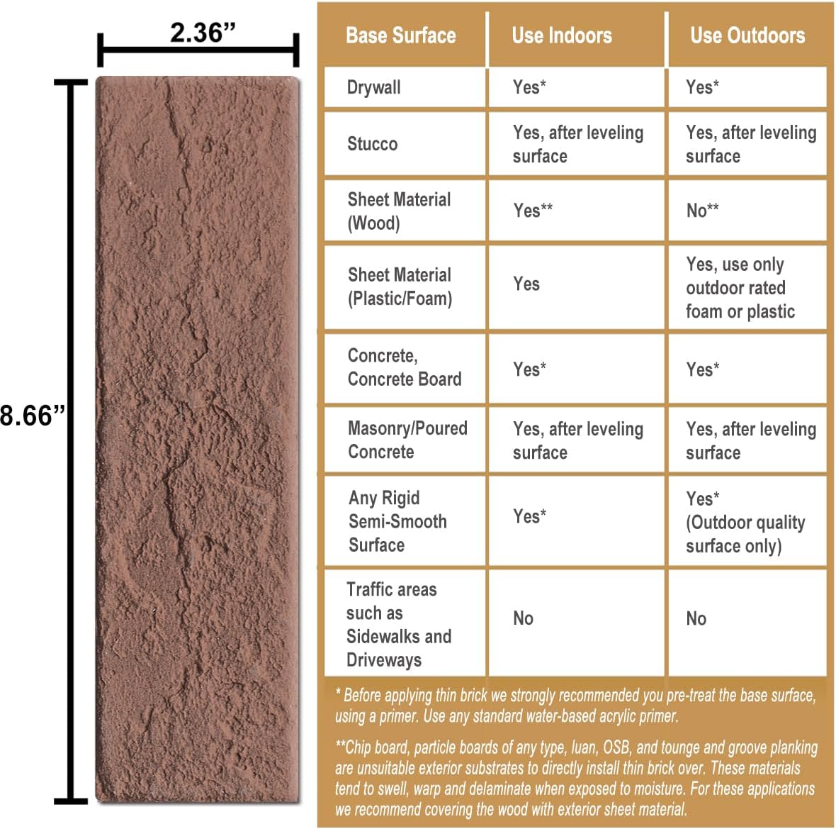 - Lightweight and easy to cut, no special tools needed, much easier for the do-it-yourselfer. Simply use a notched trowel spread the premixed tile adhesive to virtually any surface and press the single thin bricks sheets into place, half cost and time of conventional brick installation.