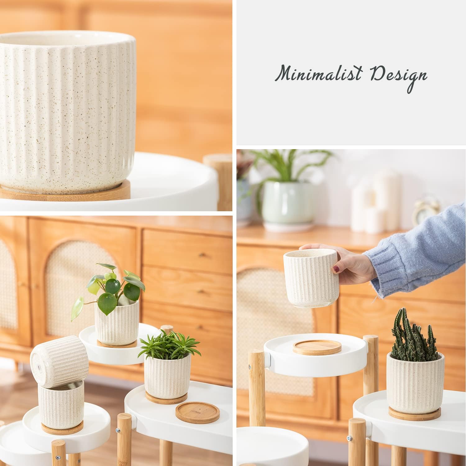 - Minimalist Design Elements - The plant pots in smooth glaze are easy to clean. These beige plant pots in minimalist design go well with any decoration, also looks fantastic in any settings.