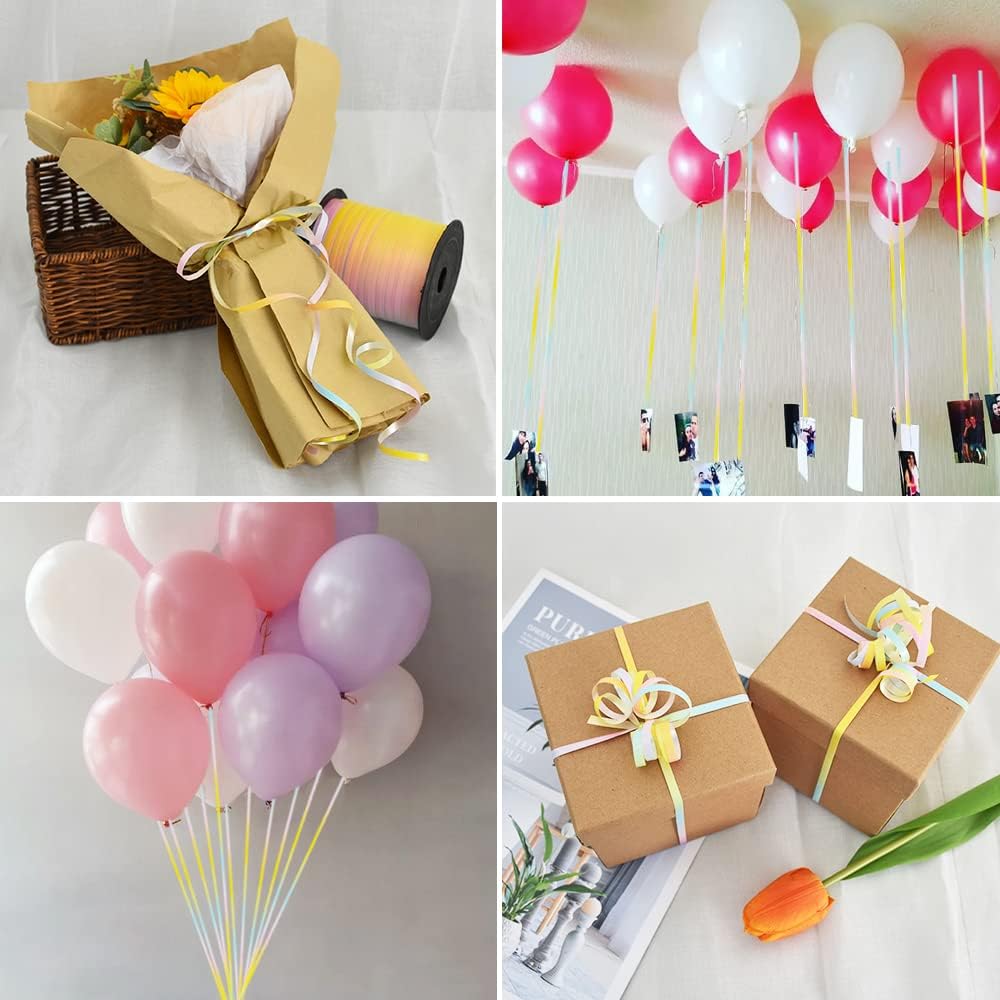BEISHIDA 500 Yards Rainbow Curling Ribbon Pastel Balloon String, Light Color Balloon Ribbon for Crafts Colorful Crimped Curling Ribbon for Gift Wrapping Party Art Florist Flowers Decoration Supplies