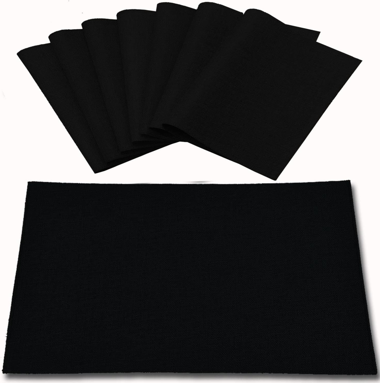 Cloth Placemats Set of 8, Linen Type Fabric Placemats Machine Washable Heat Resistant Placemats Wrinkle Free Thick Polyester Kitchen Place Mats for Dining Table (Black)