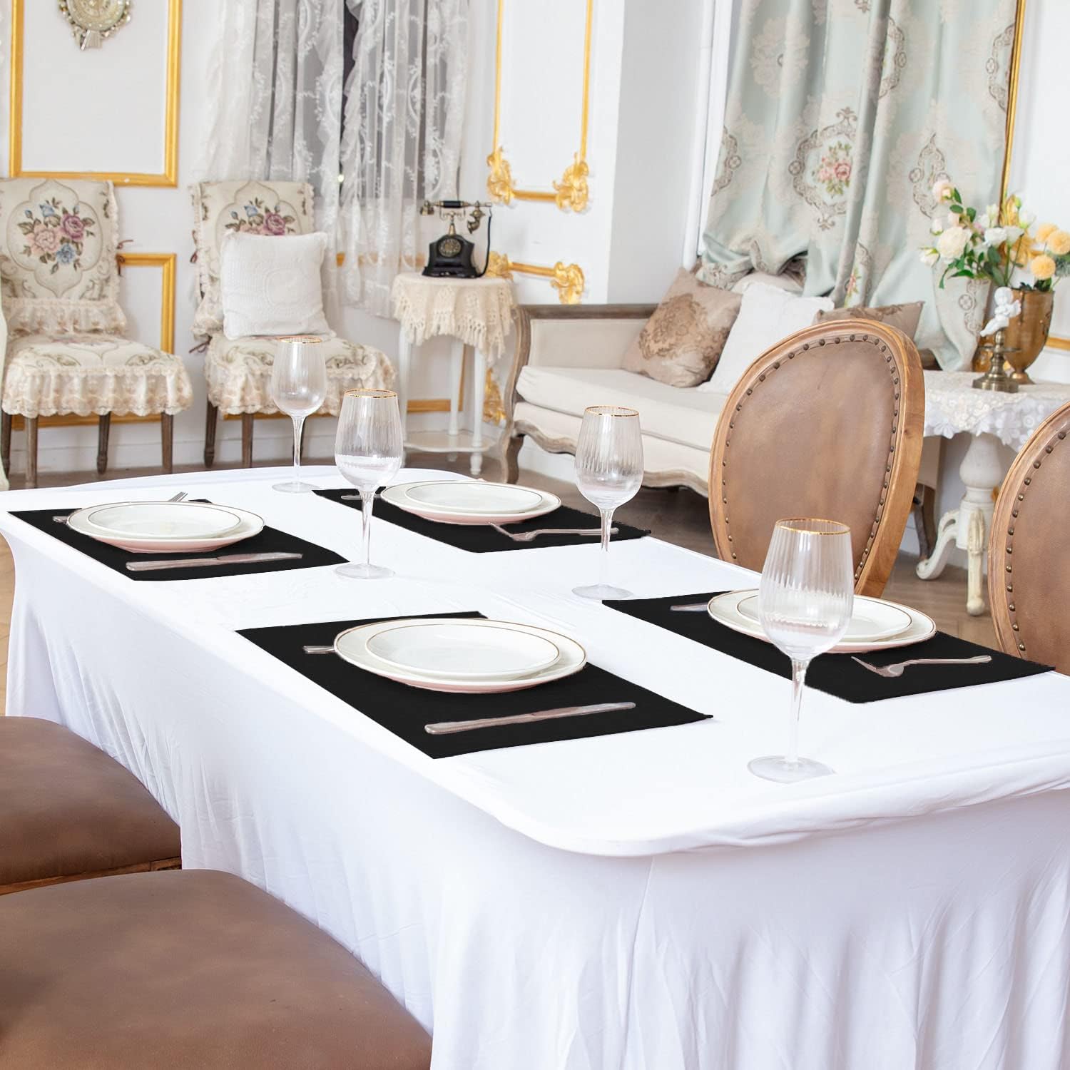 - [SUITABLE FOR DAILY USAGE ON THE TABLE] The placemats are durable and suitable for daily use of kitchen table and dinner table or other furniture such as wooden bedroom nightstands, arm chair covers, glass tabletop. And it can also be a decoration for various seasons such as Thanksgiving, Valentine's Day, Easter, Christmas.
