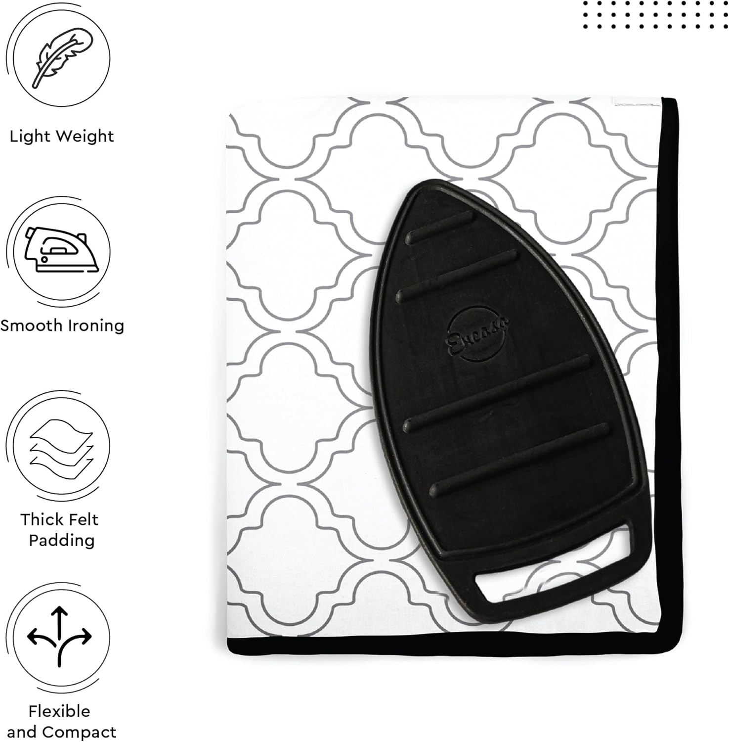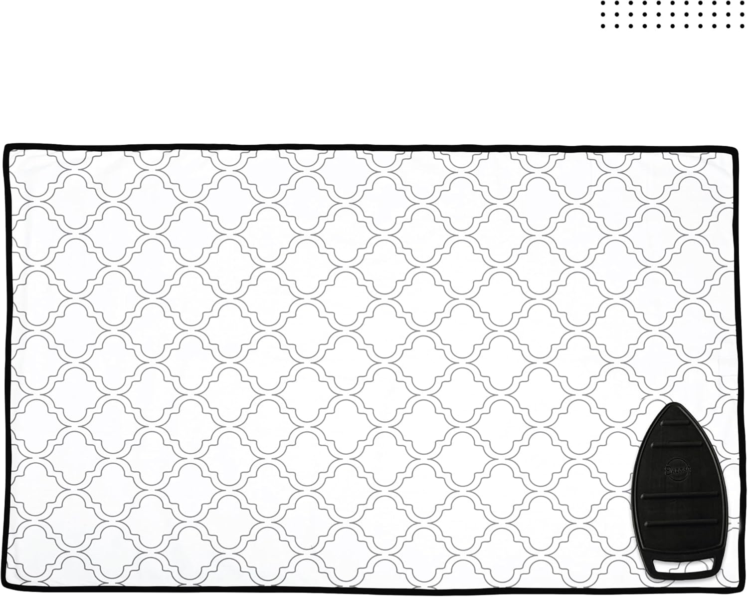 Encasa Homes Ironing Mat/Pad (Large 48"x28") with 3mm Padding & Silicone Iron Rest for Steam Pressing on Tabletop or Bed - Heat Resistant, Portable, Quilting & Travel Blanket - White Tiles