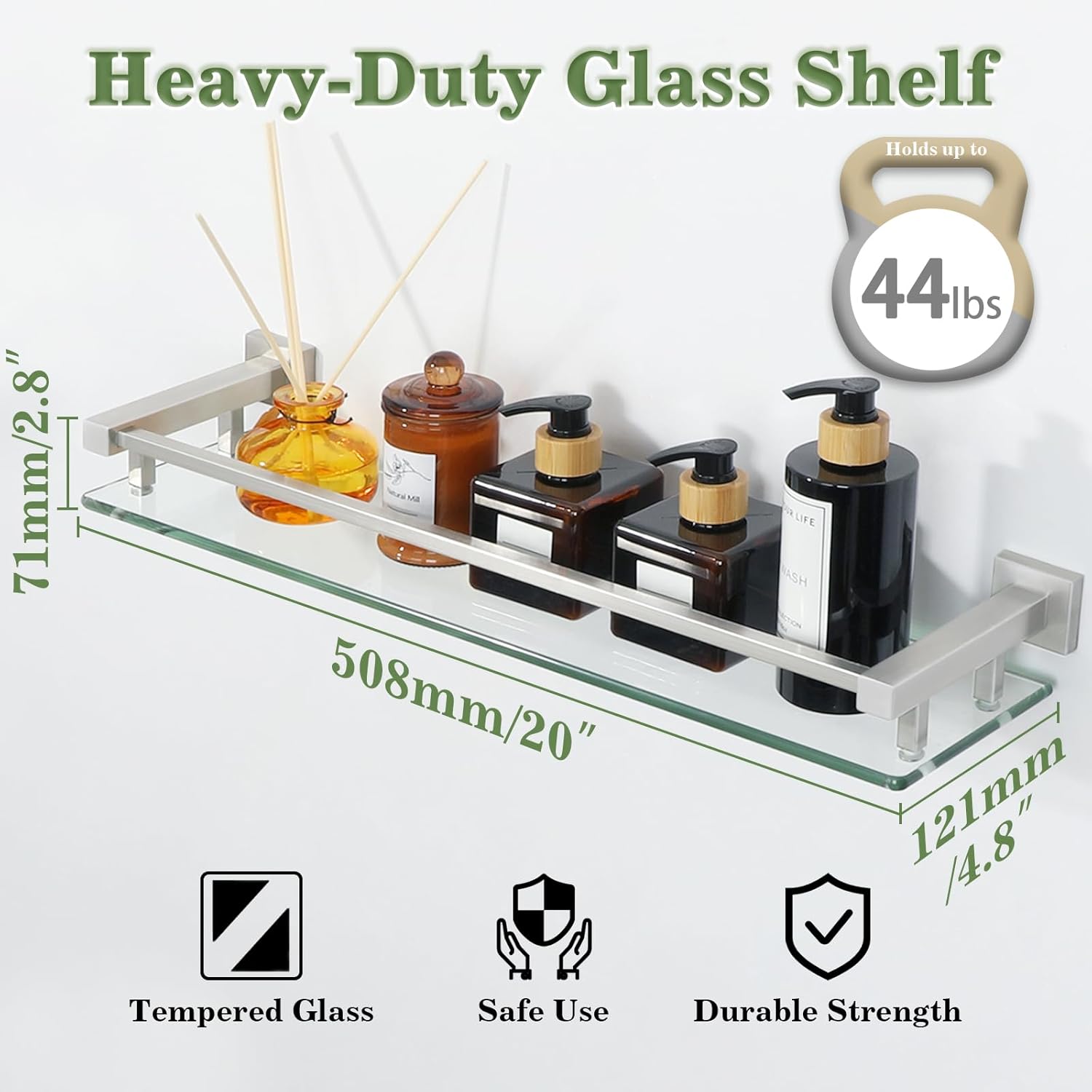 Alise Bathroom Shelves,Brushed Nickel Glass Shelf for Bathroom, Modern Floating Shelves,20 inch