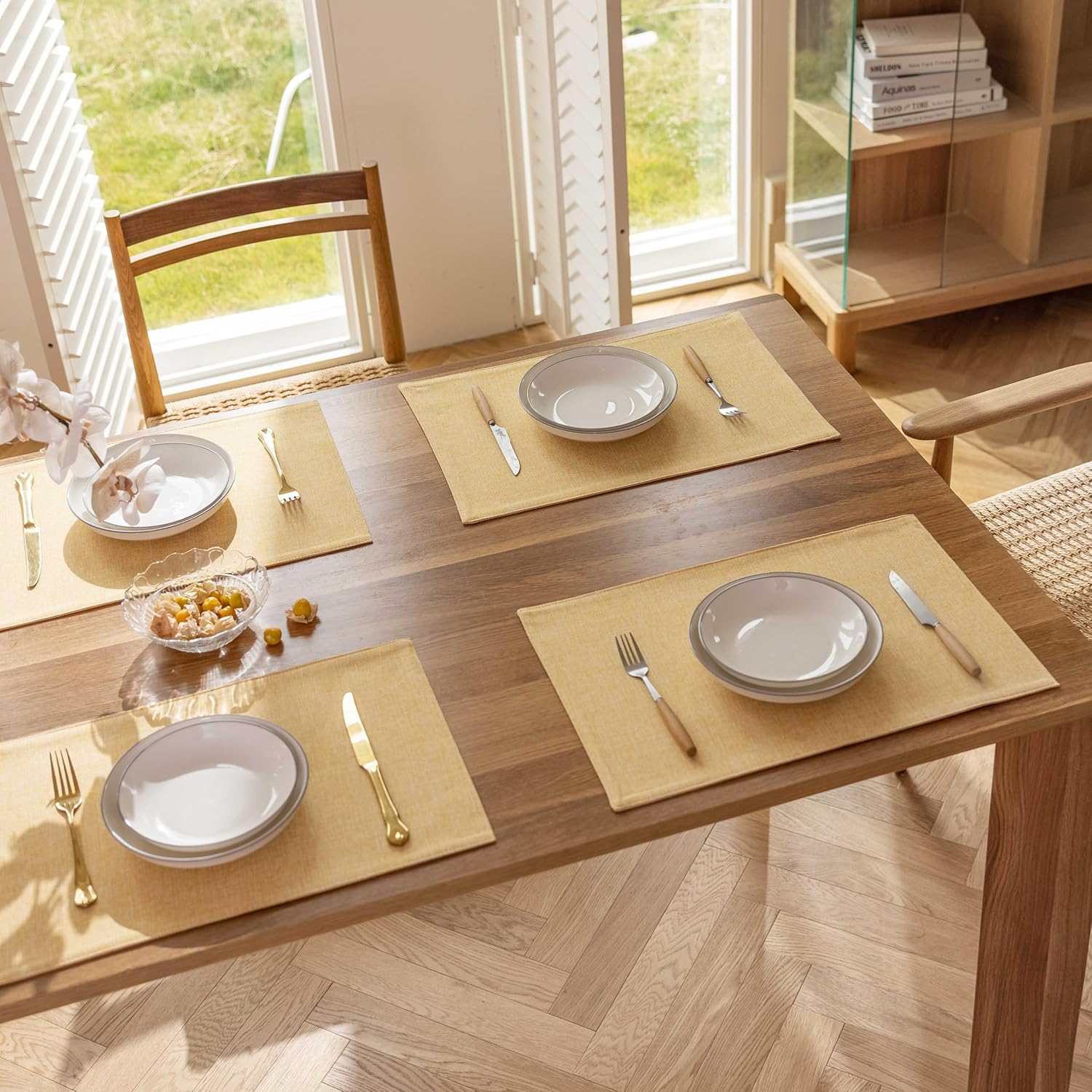 Demetex Yellow Placemats Set of 4 Farmhouse Table Place Mats for Dinner Heat Resistant Cloth Placemat for Kitchen Dining Tables, Yellow