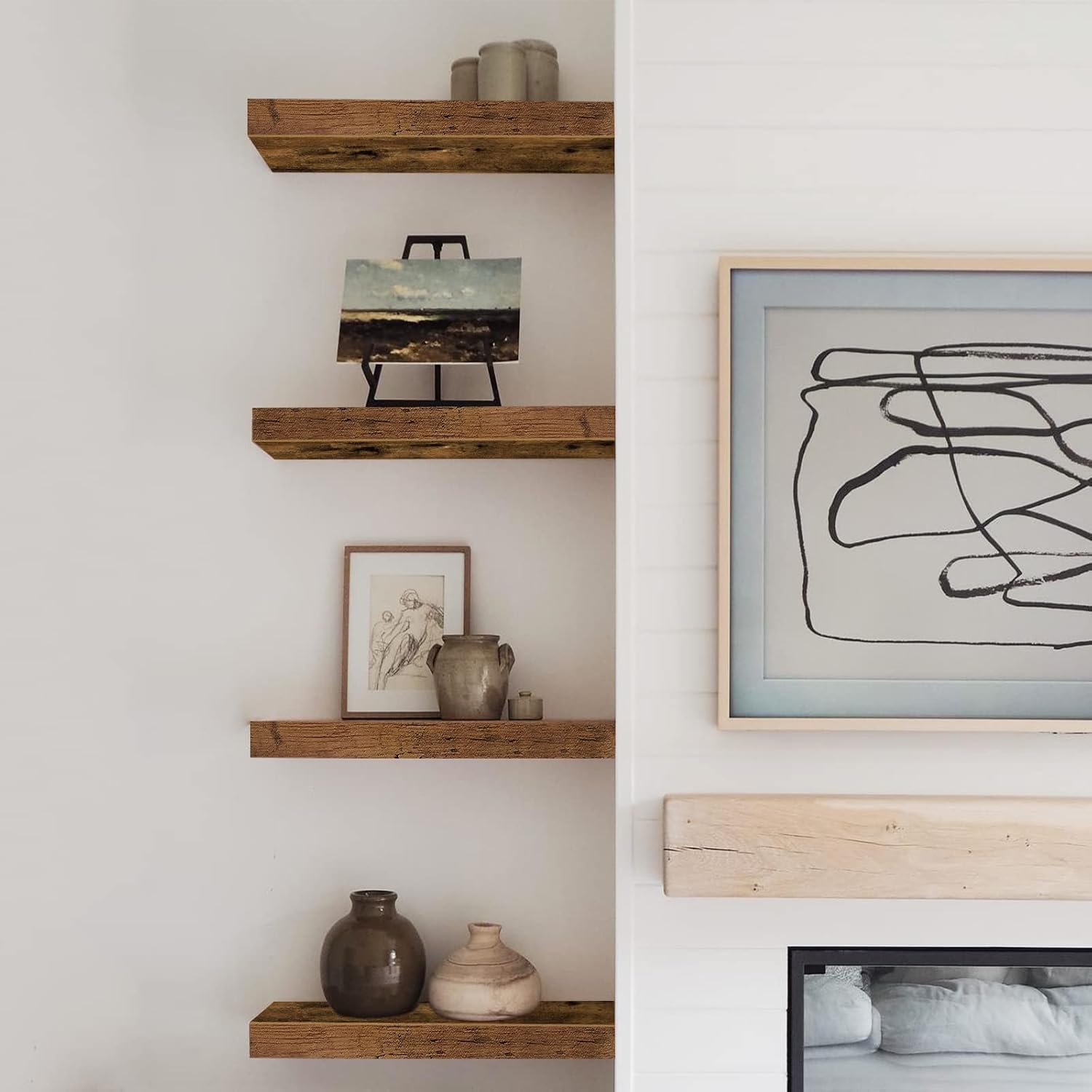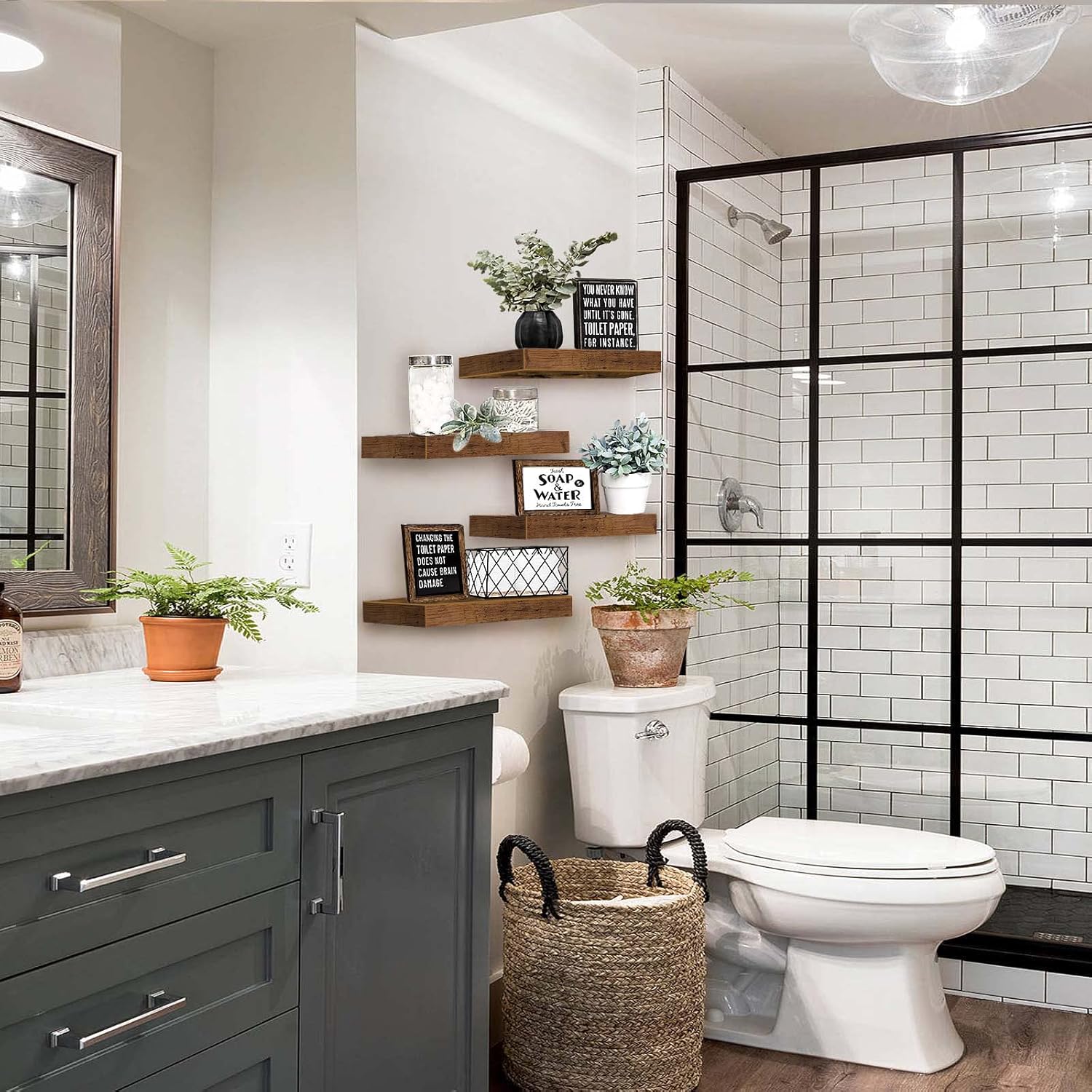 QEEIG Floating Shelves for Wall Bathroom Shelf Bedroom Kitchen Living Room Farmhouse Small Book Shelf 16 inch Set of 4, Brown (015-BN4)