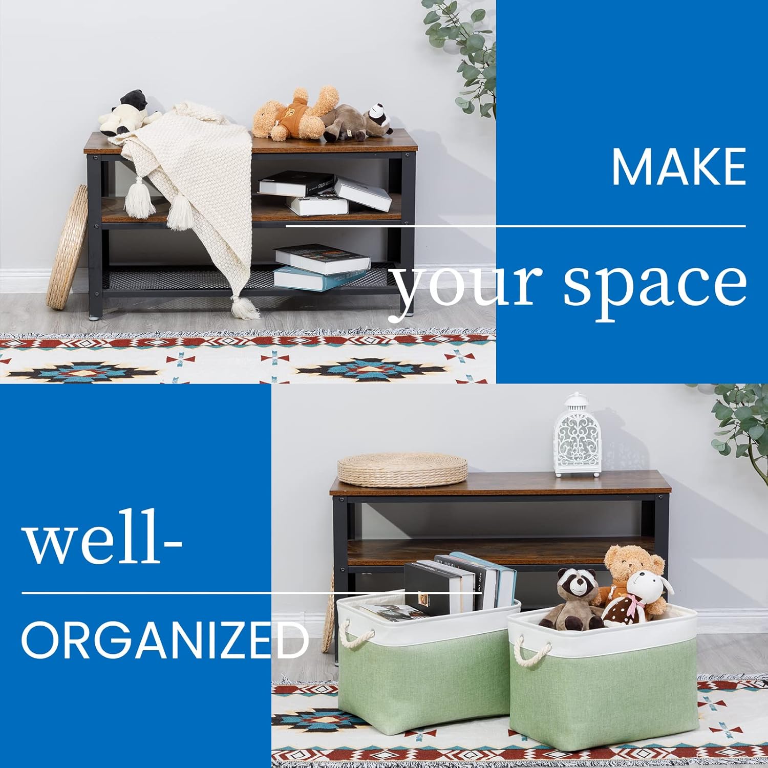 Bidtakay Baskets Fabric Closet Organizer Set of 2 Green Collapsible Storage Bins with Handles 16x12x12 in Large Decorative Tall Baskets for Shelves Nursery Baby Toys Storage Living Room Decor