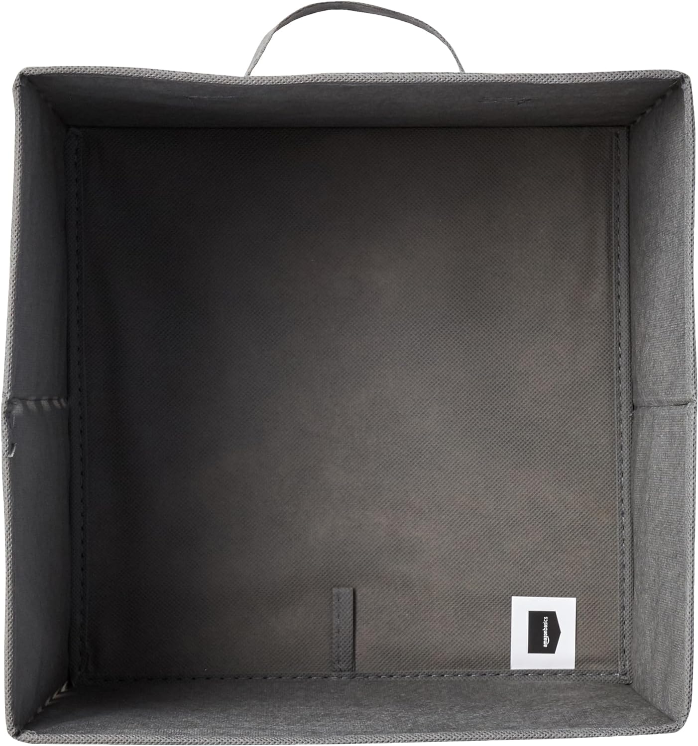 Amazon Basics Cube Organizer Storage Bins Handles, Collapsible Fabric, Pack of 6, 10.5"x10.5"x11", White/ Light Grey Stripe