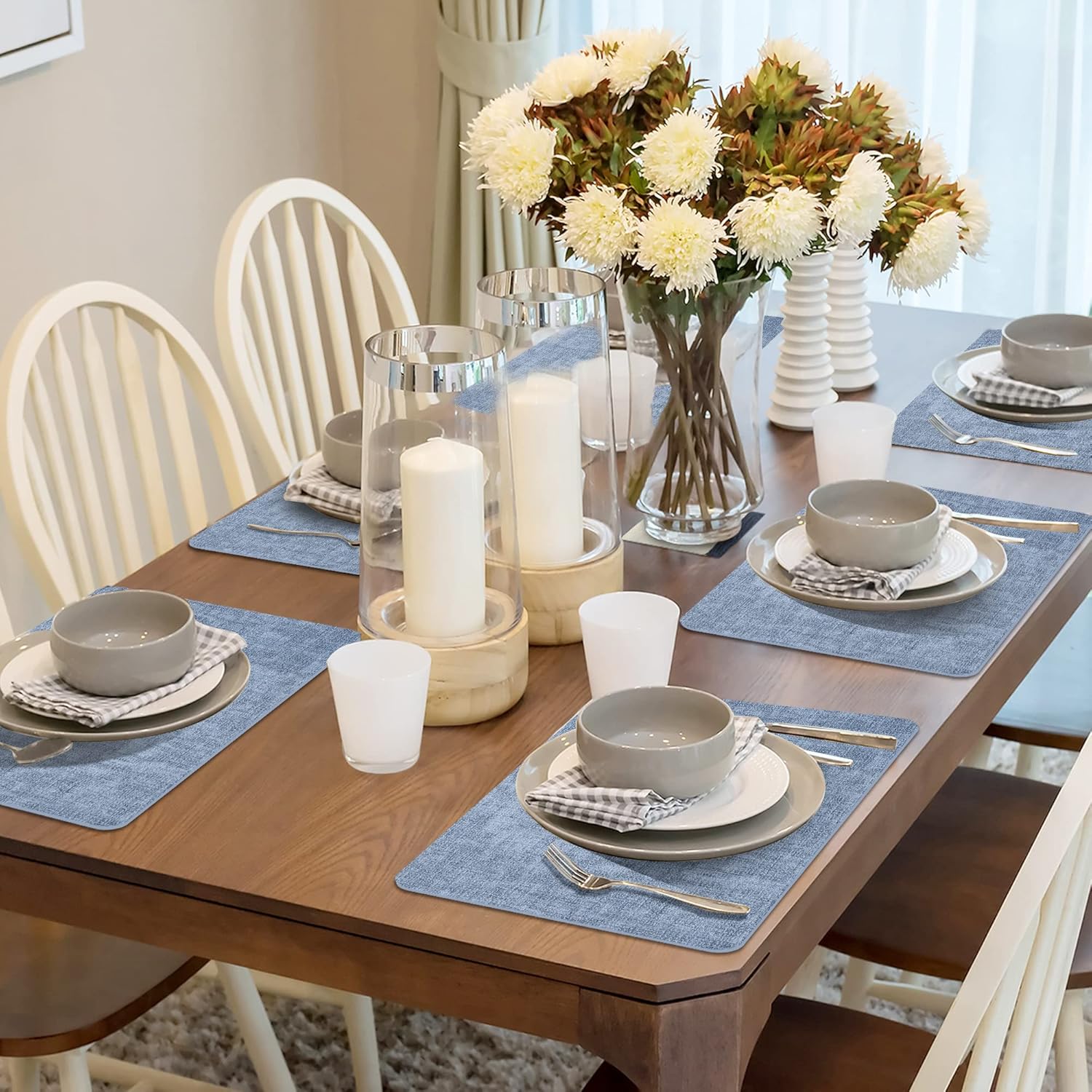 Maxpearl Faux Leather Placemats Set of 6 - Waterproof - Wipe Clean - Heat Resistant - Anti Slip Dining Table Place Mats, Suitable for Indoor & Outdoor Use, 17’’×12’’, Blue