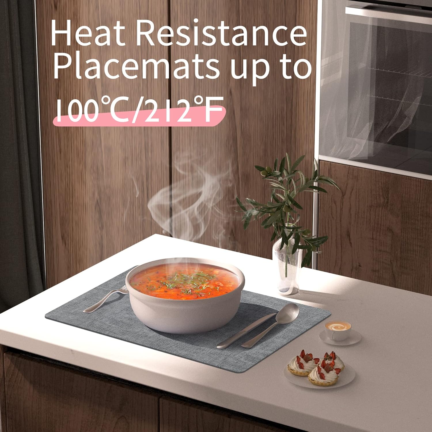 - EASY CARE: Designed for ease of use, these durable table mats withstand any spills and stains, making clean-up a breeze. Just with a simple wipe with a rag or a rinse under the tap, they'll be spotless and ready for your next meal