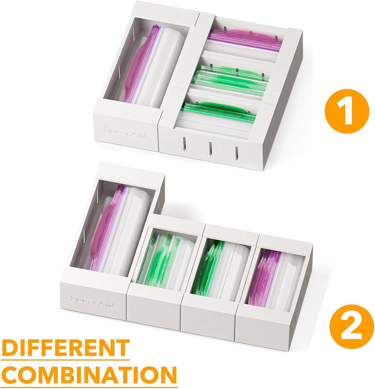 - 4 Boxes with 2 Sizes: Multiple boxes offer you a few customize combinations to organizer food-storage plastic bags, which can fit in different sizes drawers to meet your needs