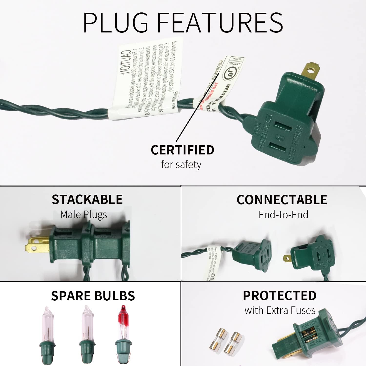 - Safty and Easily: High quality UL certified products ensure the safety of you and your family, Decorate with 100 clear incandescent mini lights with green wire will give a soft festive feel to your Christmas.