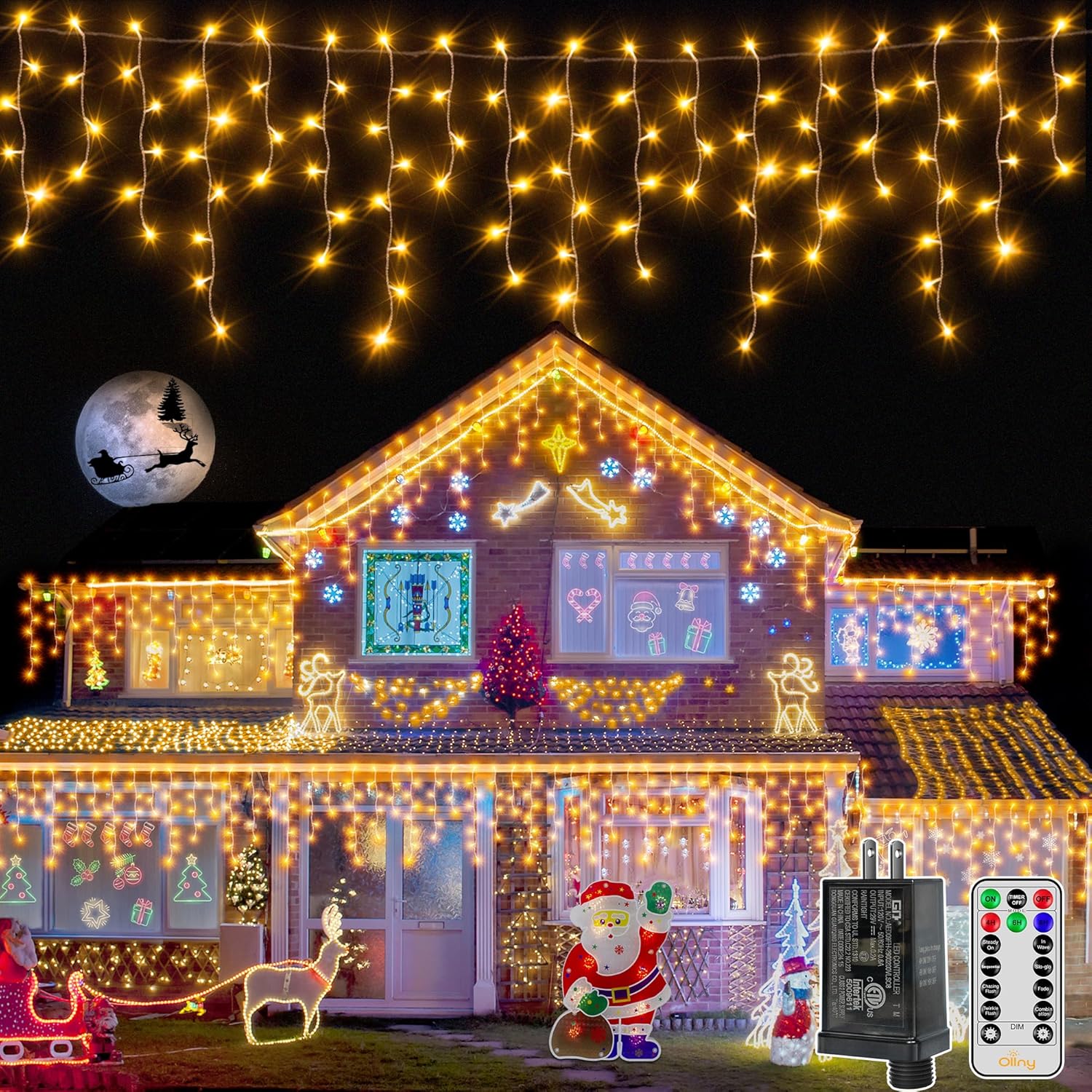 Ollny Icicle Lights for Outside 720LED 60FT, Warm White Christmas Lights with Remote 8 Modes Dimmable, Waterproof Connectable Timer Hanging Light for House Outdoor Yard Indoor Decorations