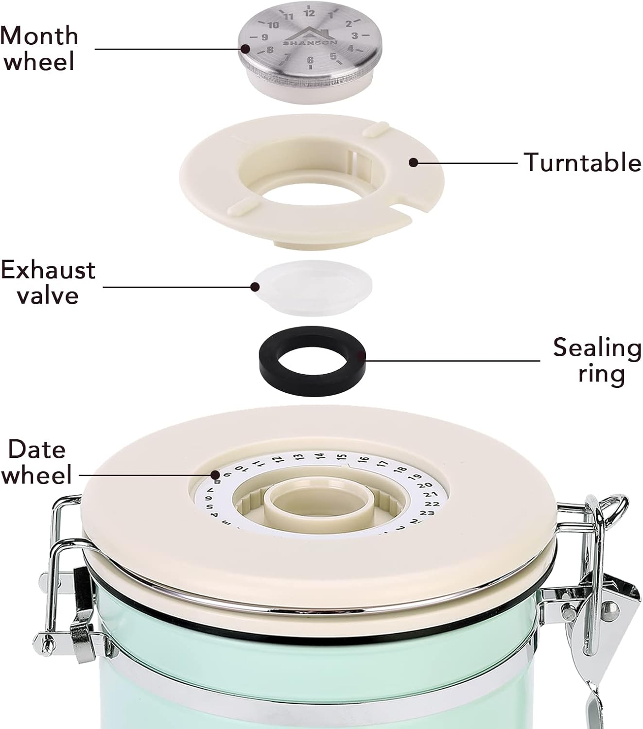 ShanSon Coffee Canister Airtight Coffee Container Stainless Steel Coffee Bean Storage Container with CO2 Release Valve and Scoop Coffee Canister for Beans,Grounds,Sugar,Flour,Tea,Cereal,16OZ,Green