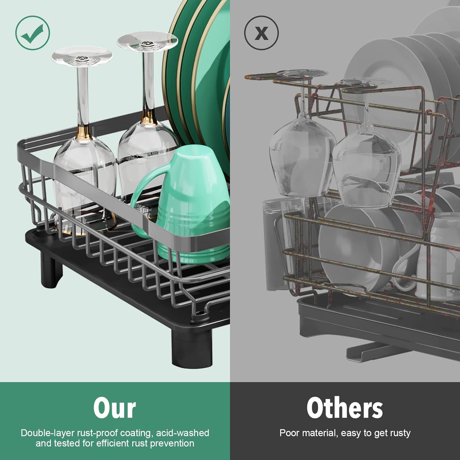 - ๐๐๐๐๐๐ ๐๐๐๐๐๐๐๐๐๐๐๐:This drying rack for kitchen counter is made of high-quality metal stainless steel covered with a rust-resistant coating to protect the dish racks from rust.The sturdy frame also provides better protection for your dishes