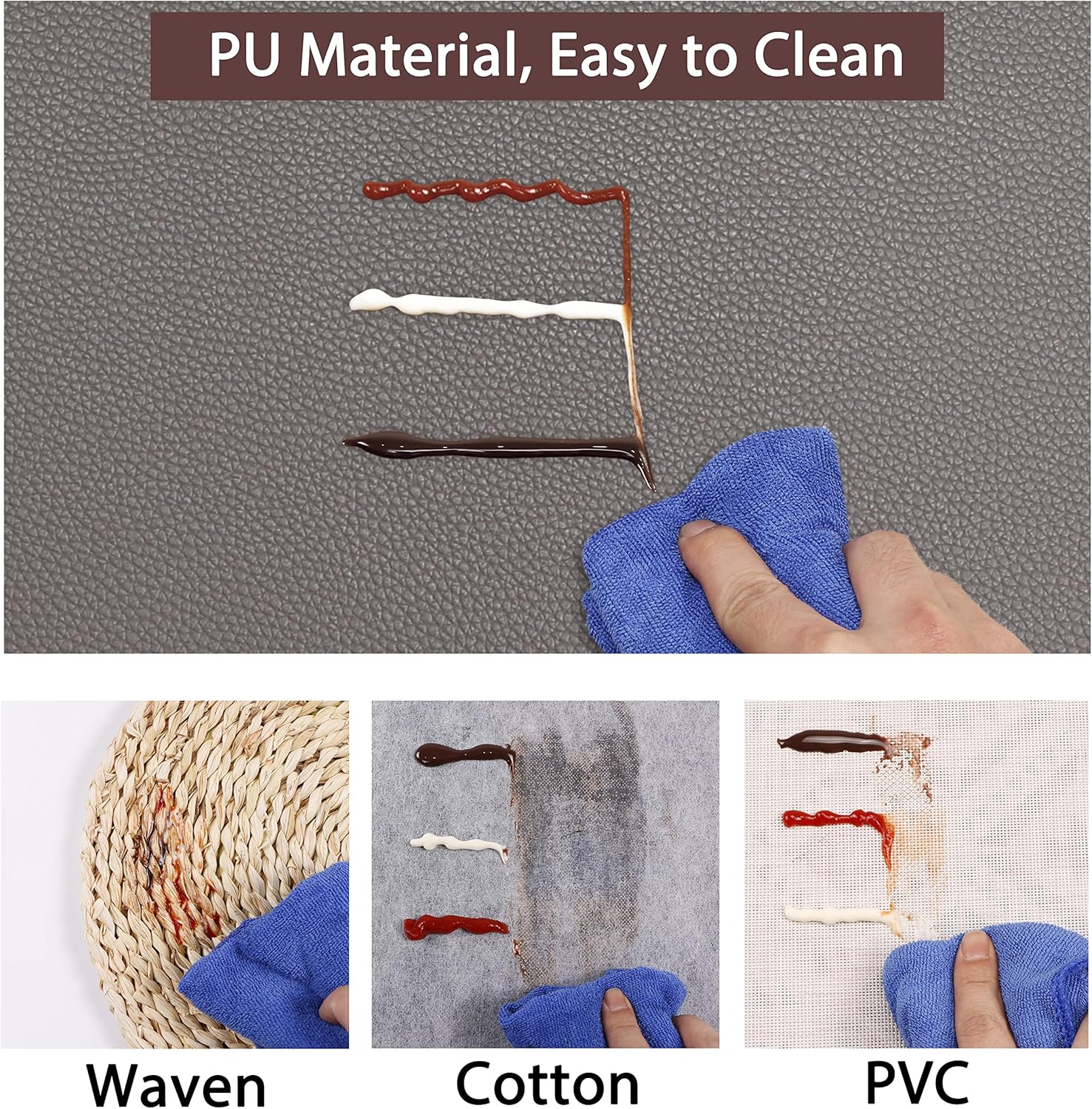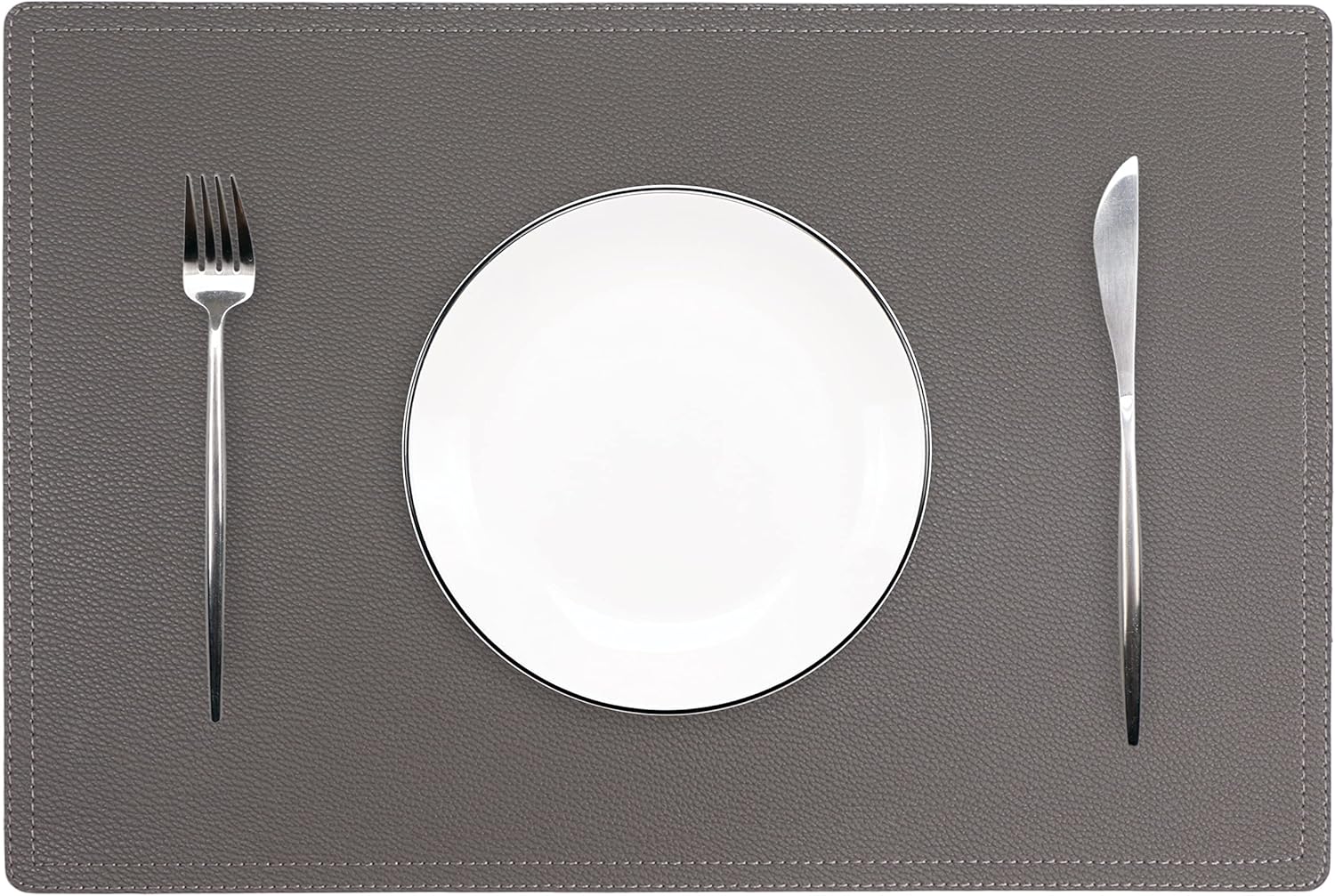 Set of 4 Faux Leather Placemats, PU Table Mats, Waterproof, Stain Resistant, Heat Resistant, Non-Slip Easy to Clean for Kitchen Dining Table,Conference Table C Grey Rectangle