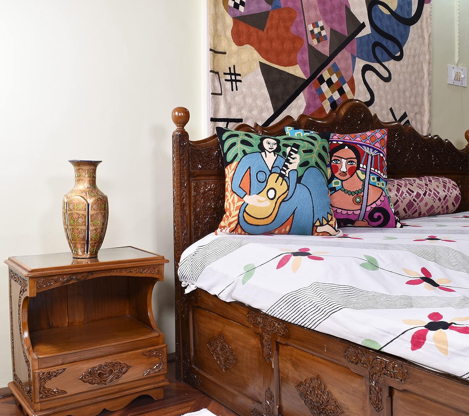 - ❤ Modern Throw Pillow Cover - Hand Embroidered: Inspired by the bold and expressive style of Henri Matisse, our vibrant decorative pillow covers are meticulously hand-embroidered using soft wool. Each piece is crafted with painstaking attention to detail by skilled artisans, resulting in a striking abstract design that adds a touch of artistic elegance to your home decor. A closer look reveals the exquisite craftsmanship of fine chain-stitch hand embroidery, making this contemporary accent pillow a true work of art.