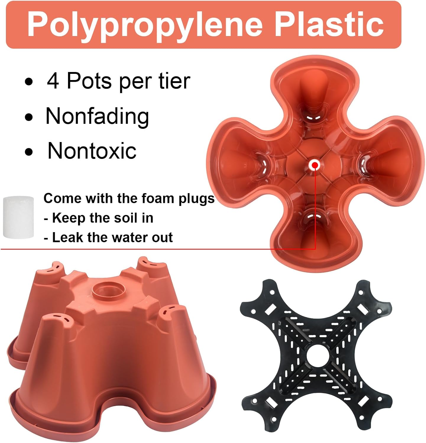 - SOIL HOLDING BOARD - Each tier has a board that holds soil while allowing water to drain down.