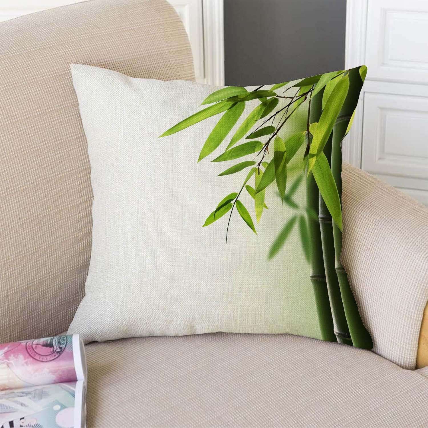 TSSOHU Green Bamboo Farmhouse Pillow Cover Cotton Linen Decorative Square Throw Pillow Cover 18x18 Inch for Sofa Couch Decoration