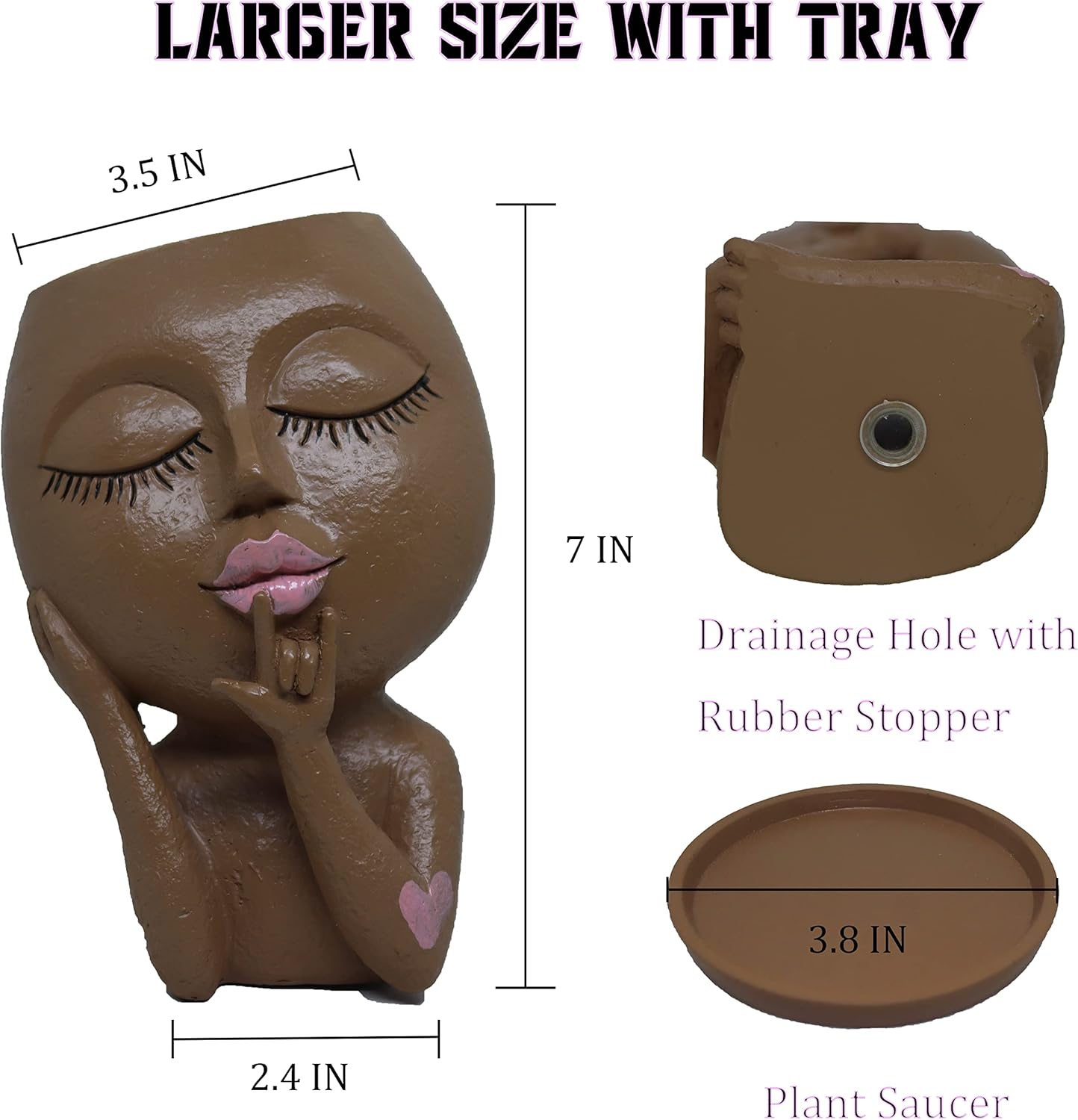 - π΅ Size of Planter Pots: The size of this unique head vase is carefully designed by us. Based on sociology and aesthetics, we found this size to be the perfect way to make this vase funny and cute. The opening diameter of the flower planter is 3.5 inches, bottom length is 2.4 inches, height is 7 inches. The Diameter of the tray is 3.8 inches.