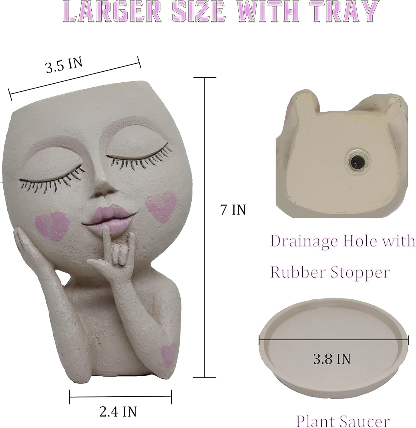- π΅ Unique Flower Pots: Dolkgy cute head shape planter with I love you gesture. This unique design makes the flower pot a nice home garden decorative art craft. This funny head vase can decorate windowsill, desktop, shelf, balcony, living room, bedroom, kitchen, garden, office, etc . Perfect for indoor and outdoor container plants and also great for artificial fake flowers plants.
