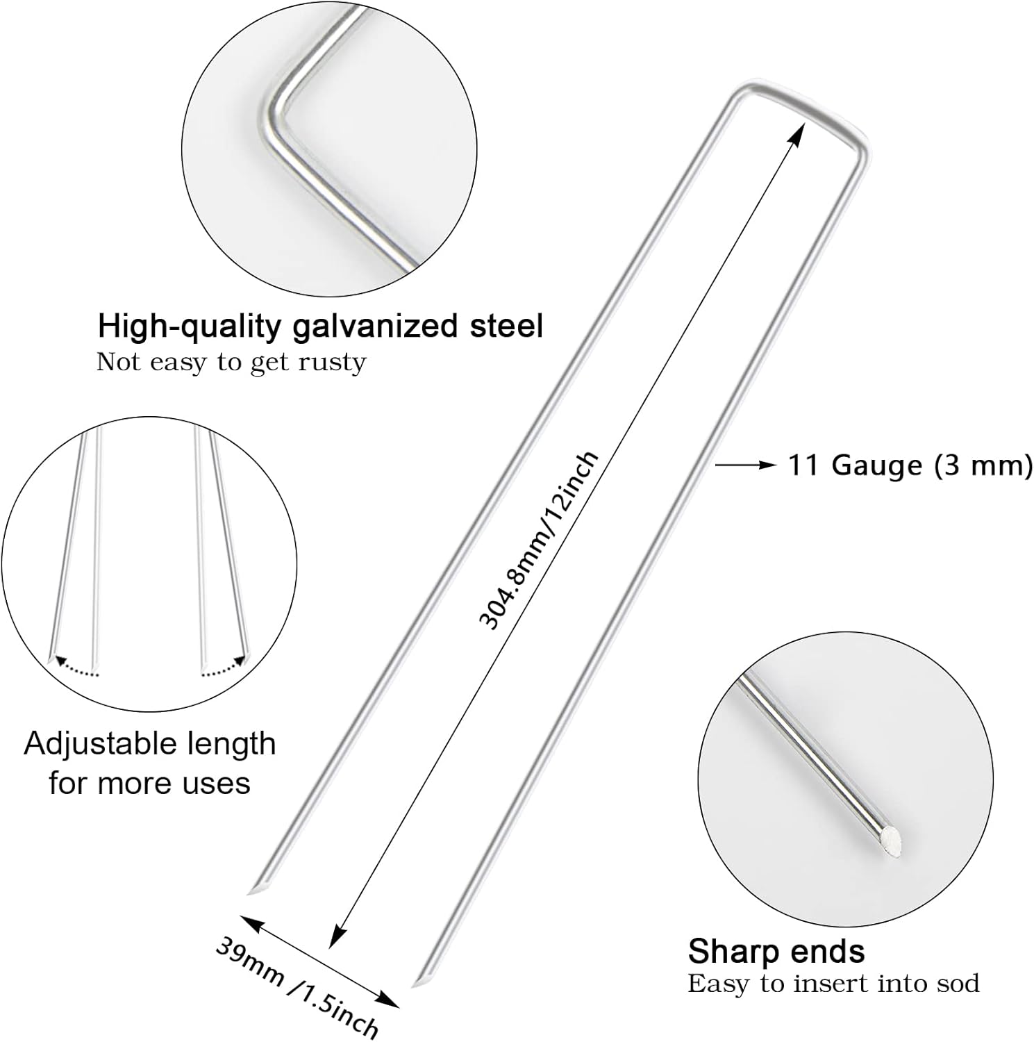 - 【MATERIAL】Our landscape pins are made of heavy duty galvanized steel. Premium quality makes them durable and can be reused many times. Our landscape fabric stakes are made of durable galvanized steel. It is so strong to insert into the ground with adjustable width.