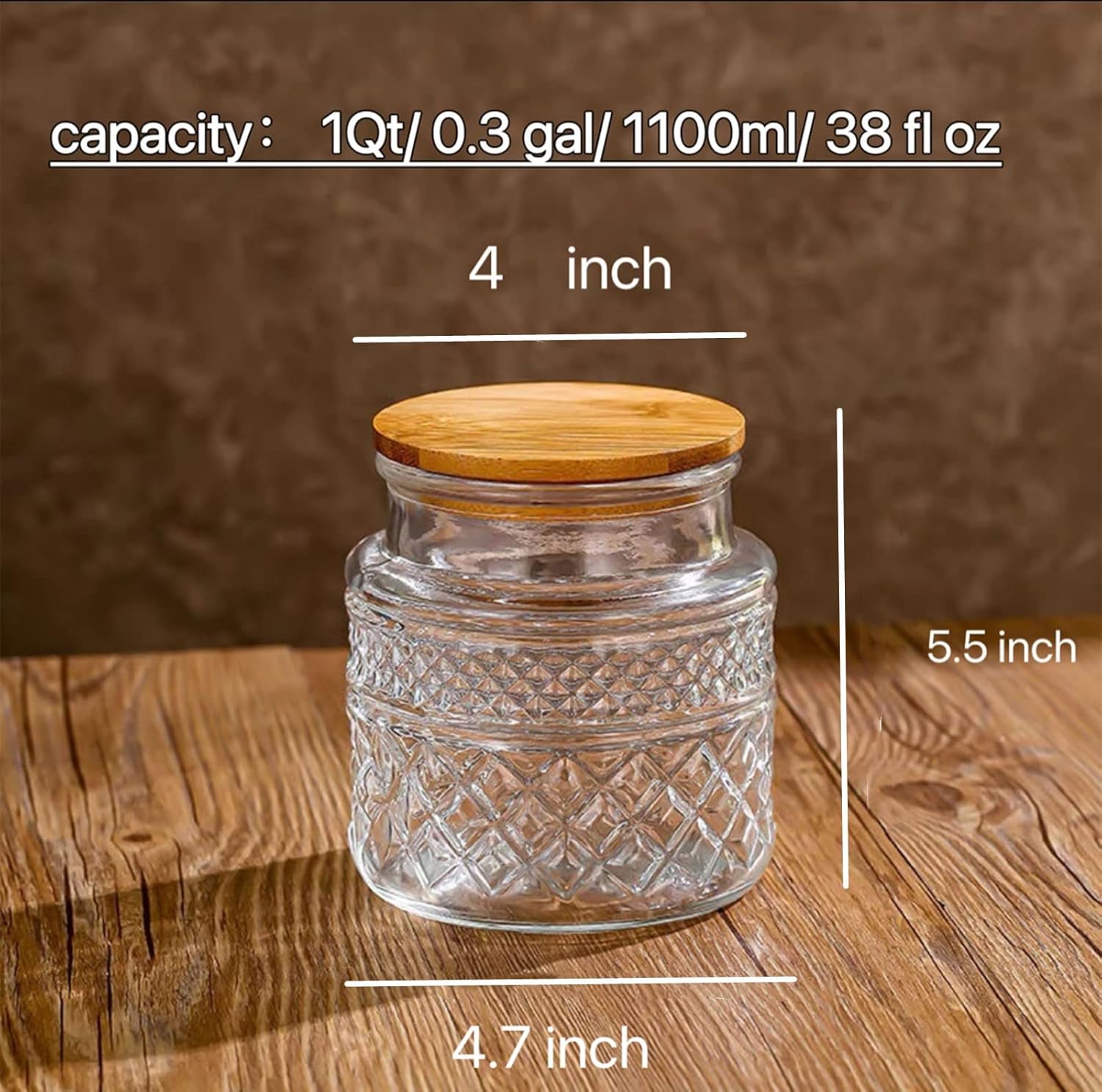 Glass Storage Jar, 38 FL OZ, Food Canisters with Bamboo Lid, Kitchen Containers Decorative Airtight Glass Jars For Cereal Nuts Snack Candy Cookies Coffee Tea