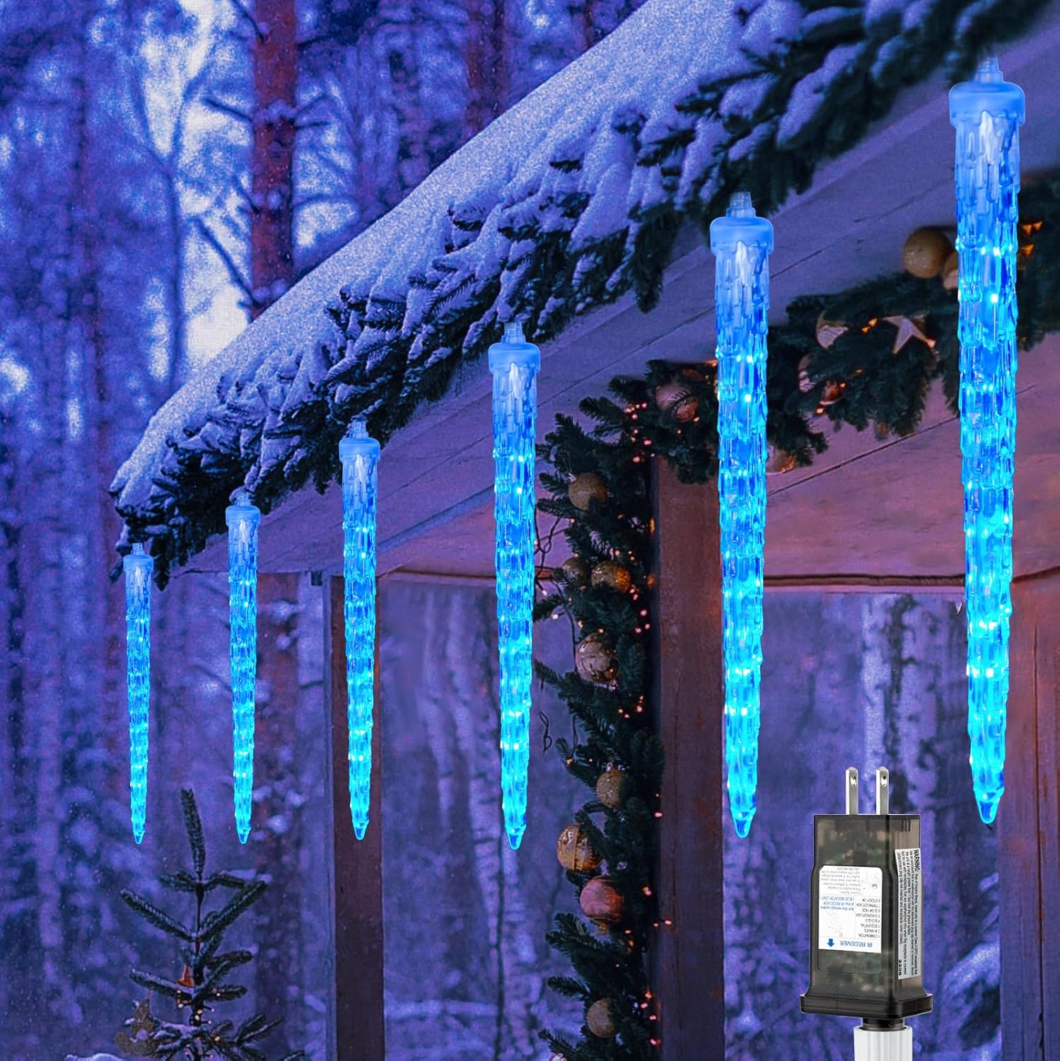 - 【Crystal Christmas Icicle Lights】Bring a classic ice crystal design to your home with 11-inch artificial icicles. With 10 tubes and a total of 240 icy blue LEDs, these lights create a winter wonderland in your front yard or garden- perfect for Christmas;