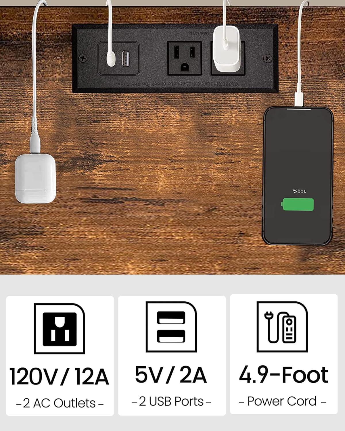 - [End Table with Charging Station] This side table with 2 AC outlets, 2 USB ports, and the 4.5 ft extension cord helps you charge your phone, tablet, lamp, and game console at the same time. Also, the distance between each outlet and port prevents adapters from blocking each other.