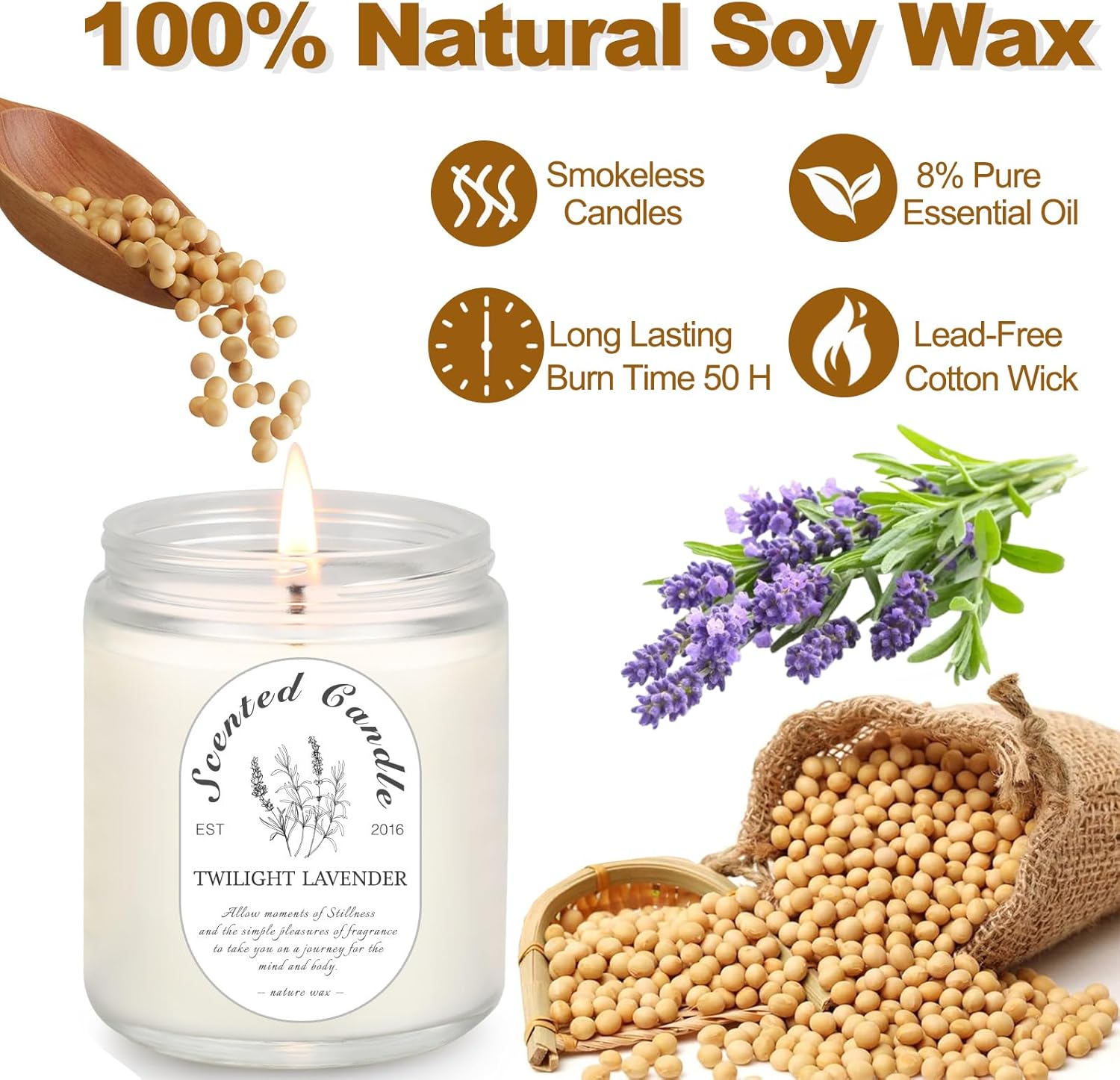 - [Natural Lavender Fragrance]: Pure natural essential oils scented which has a better diffusion ability. This candle is great for sleep-promoting and relief from anxiety, depression, and stress; A perfect addition to the bathroom, bedroom, kitchen, living room, office, etc. Whenever you and your friends and family see it, it can always remind you and your visitors that you are great!