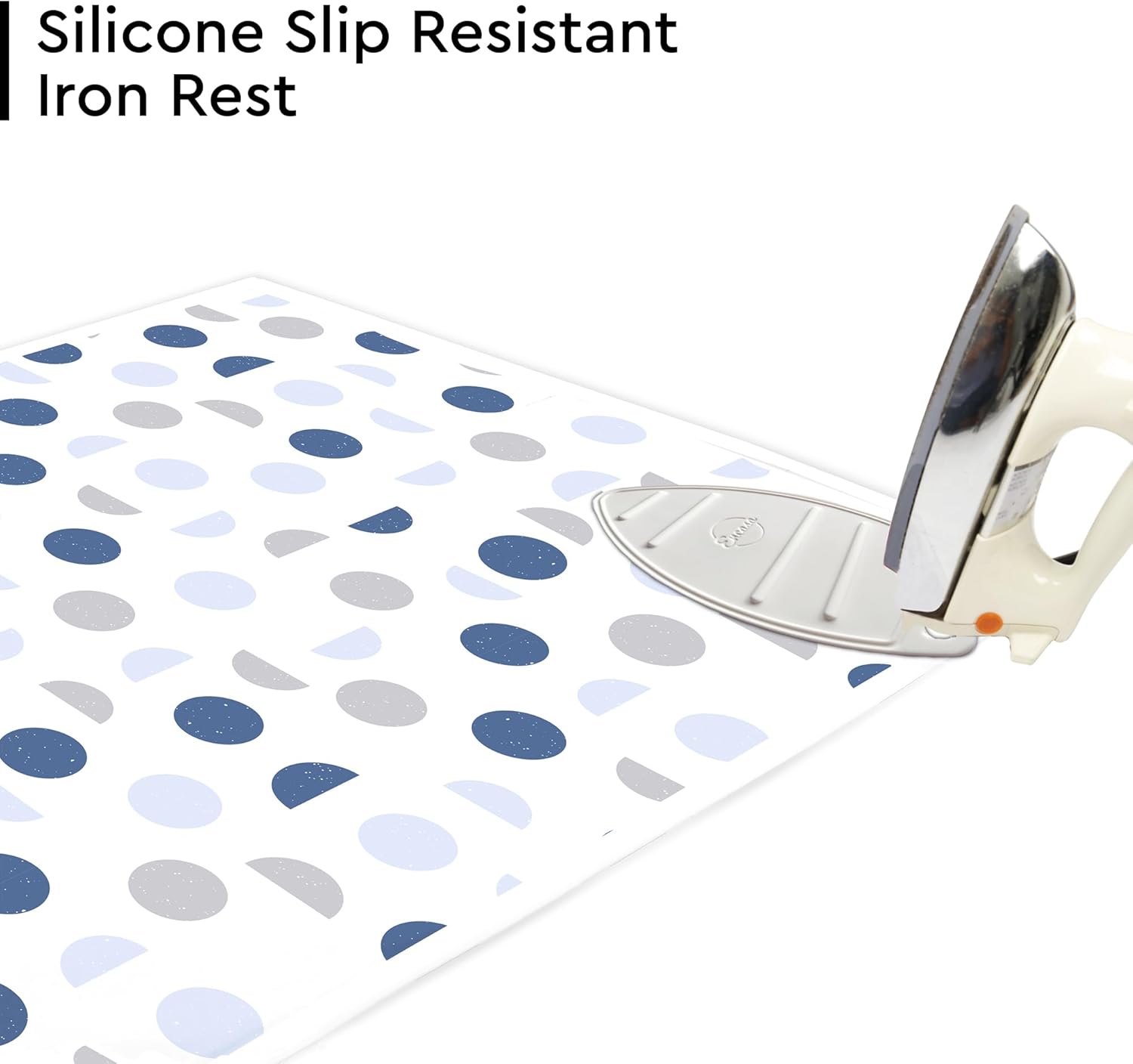 - QUALITY: Pure Cotton Printed fabric laminated with fibre pad for soft and quick ironing. Silicon Mat attached in one corner for keeping the hot iron. Printed fabric is scorch resistant and does not discolour easily . Fibre pad protects Table or Bed from burning as well as allows steam to go through and also holds heat for quick ironing.