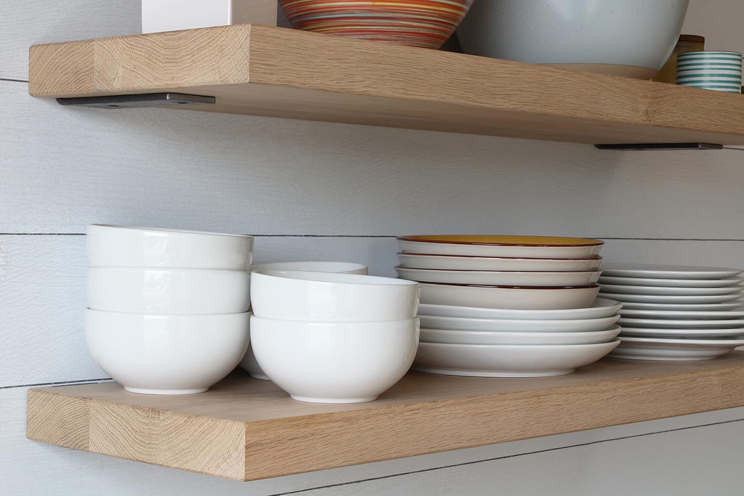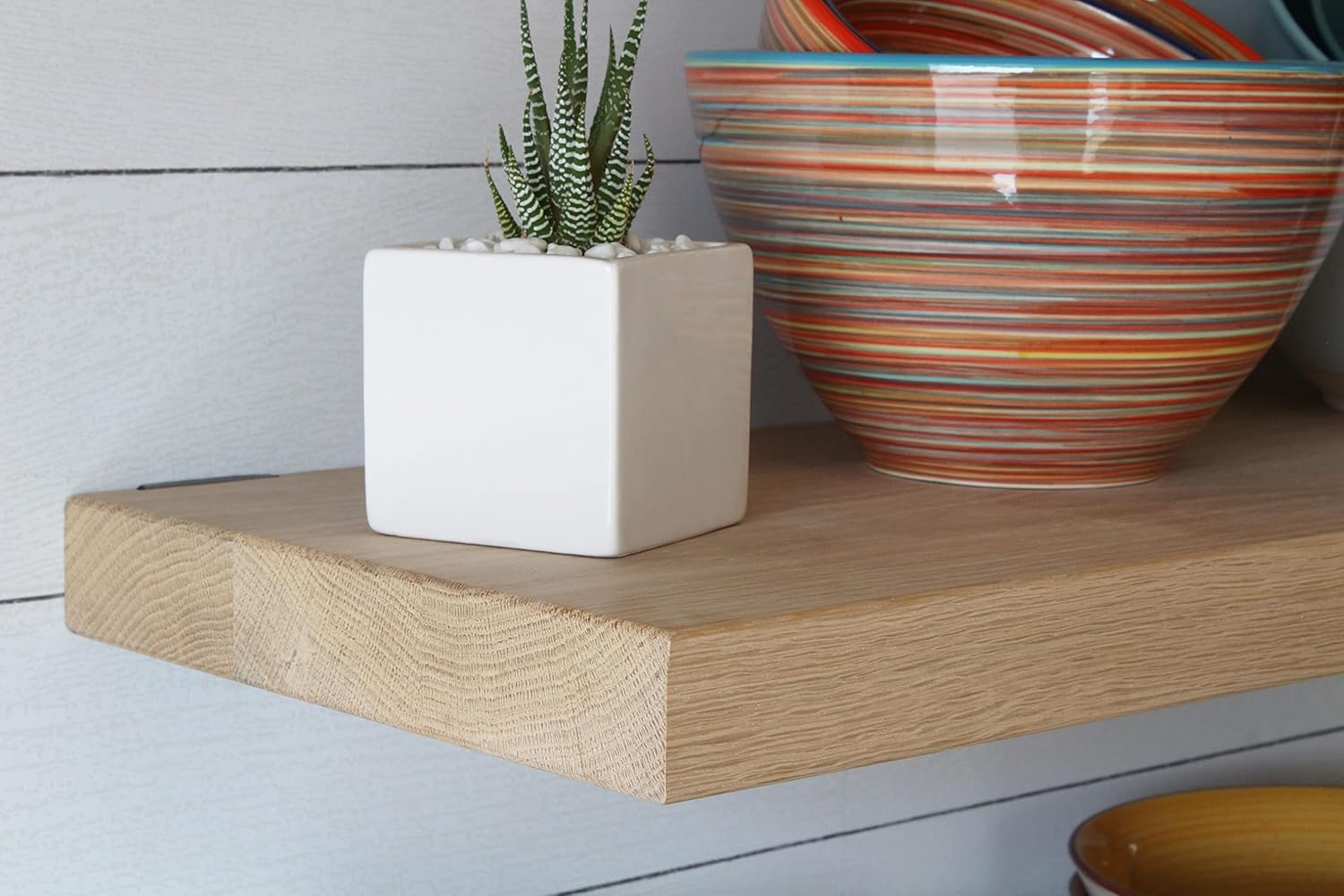 - HANDCRAFTED FROM NEW, HIGH QUALITY OAK: These white oak shelves are meticulously crafted from high quality white oak wood. Each floating shelf is carefully sealed using a professional-grade clear coat varnish to protect the wood and highlight the natural grain patterns that White Oak floating shelves have to offer