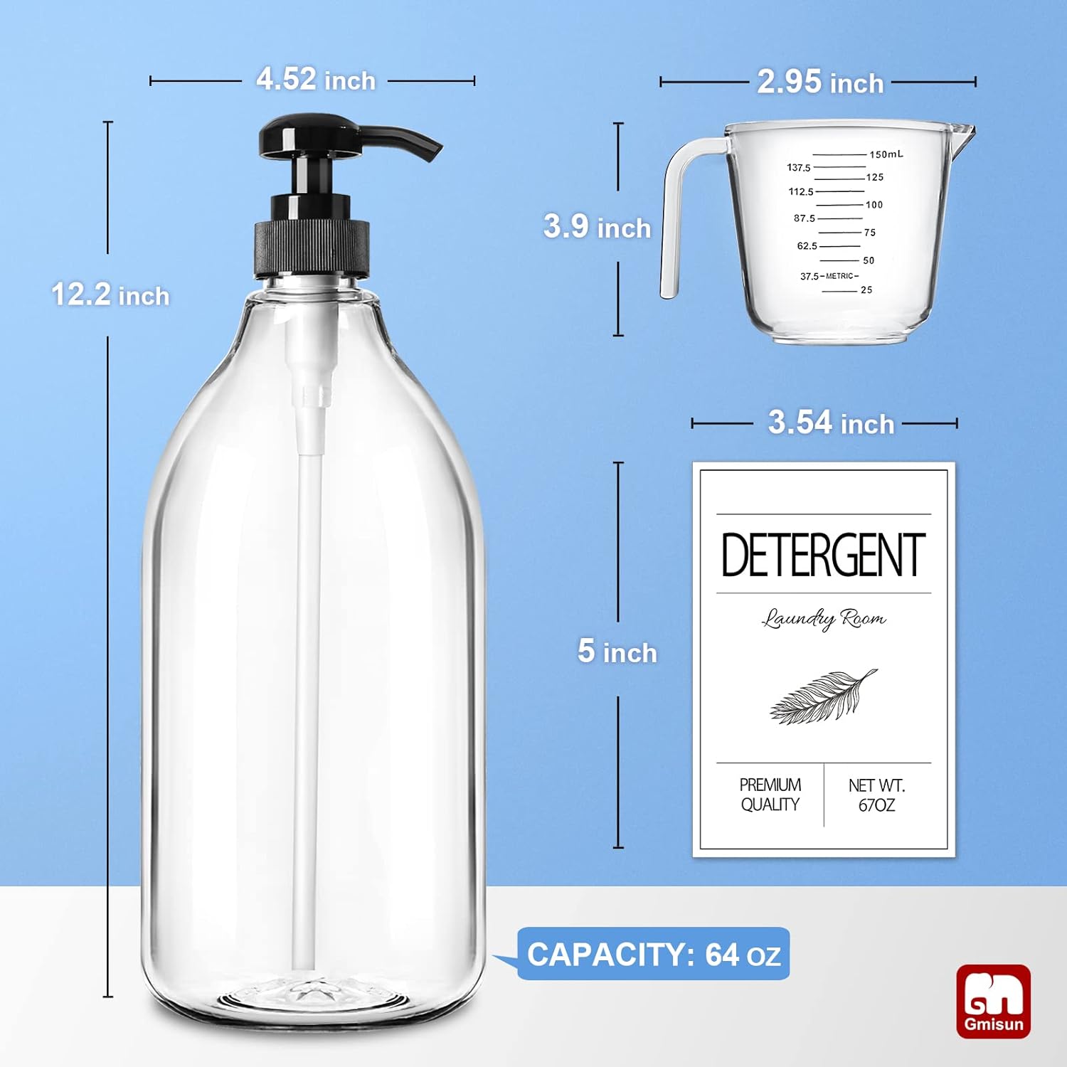 - 【64oz Sturdy Liquid Detergent Dispenser】Our upgraded laundry powder dispenser made of sturdy plastic, so it isn't too heavy when filled with liquid, no easy to leave dents on the surface. 64 oz large capacity laundry dispenser, avoid having to constantly refill, enough for a family to use for a whole month. Its lock-down pump design ensures you won’t have leaks or spills when not using it.