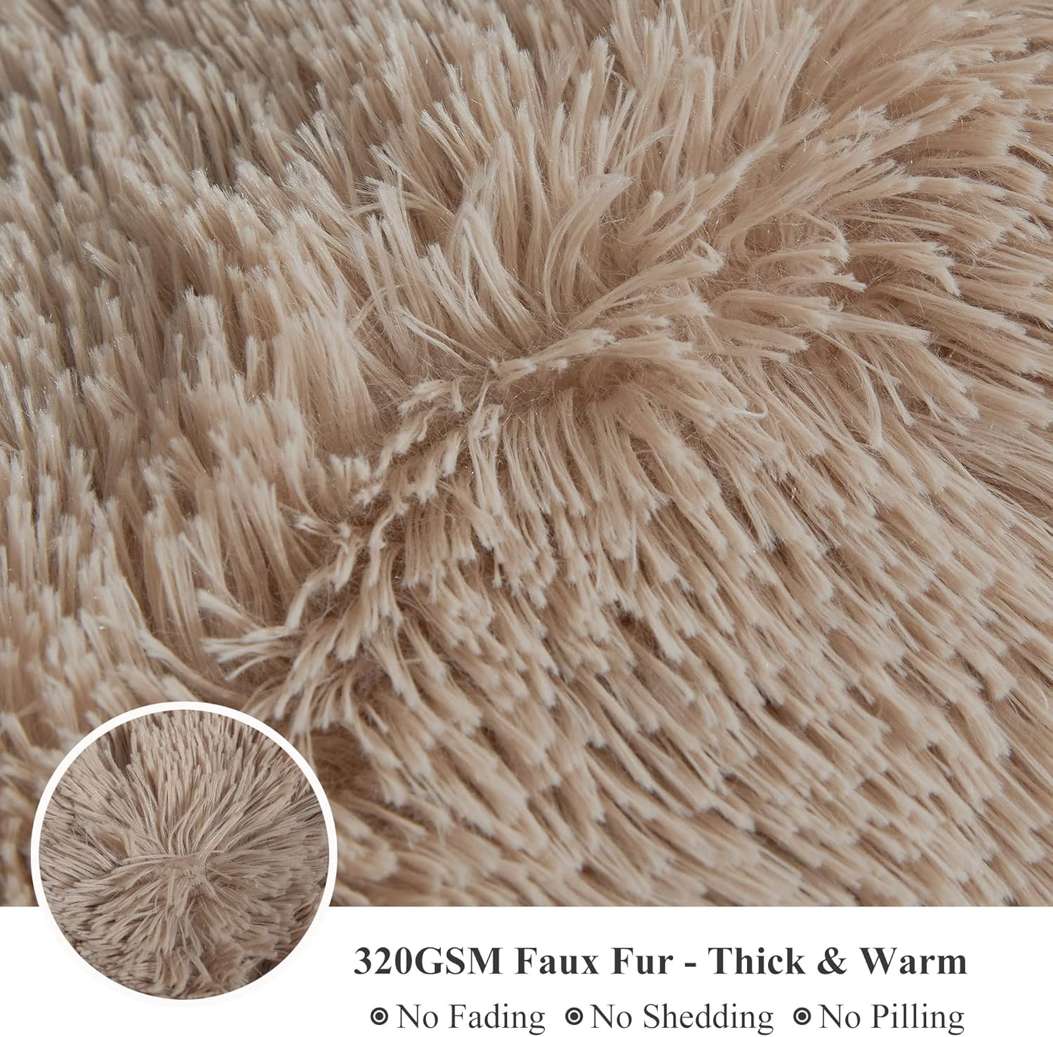 XeGe Luxury Faux Fur Throw, Soft 50x60 Fluffy Blanket, Shaggy Plush Decorative Couch Blanket, Winter Fall Cute Fuzzy Furry Lap Throw for Office Bedroom Living Room Khaki