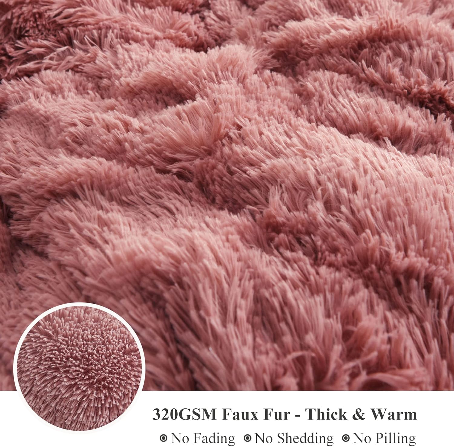 XeGe Plush Faux Fur Throw, Dusty Pink Luxurious 50x60 Shaggy Furry Blanket, Fluffy Microfiber Velvet Couch Throw, Ultra Soft Warm Fuzzy Lap Blanket for Sofa Bed Chair Car Office, Dusty Pink
