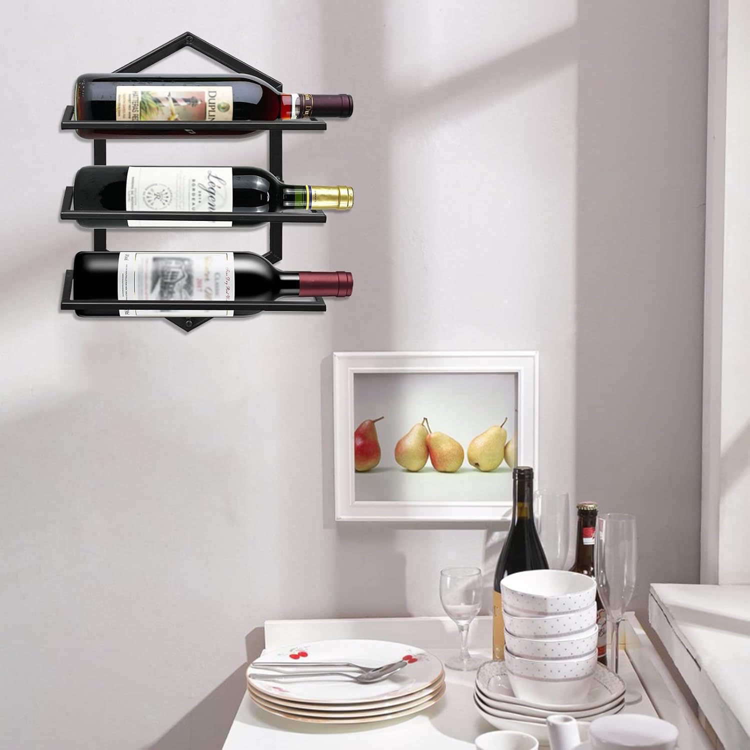 - γWine Bottle Display RackγOur wall mounted wine bottle holder presents your precious wine bottles, goblets in a stylish way, shows a unique artistic atmosphere. Wine rack holds 3 bottles of wine, or champagne.
