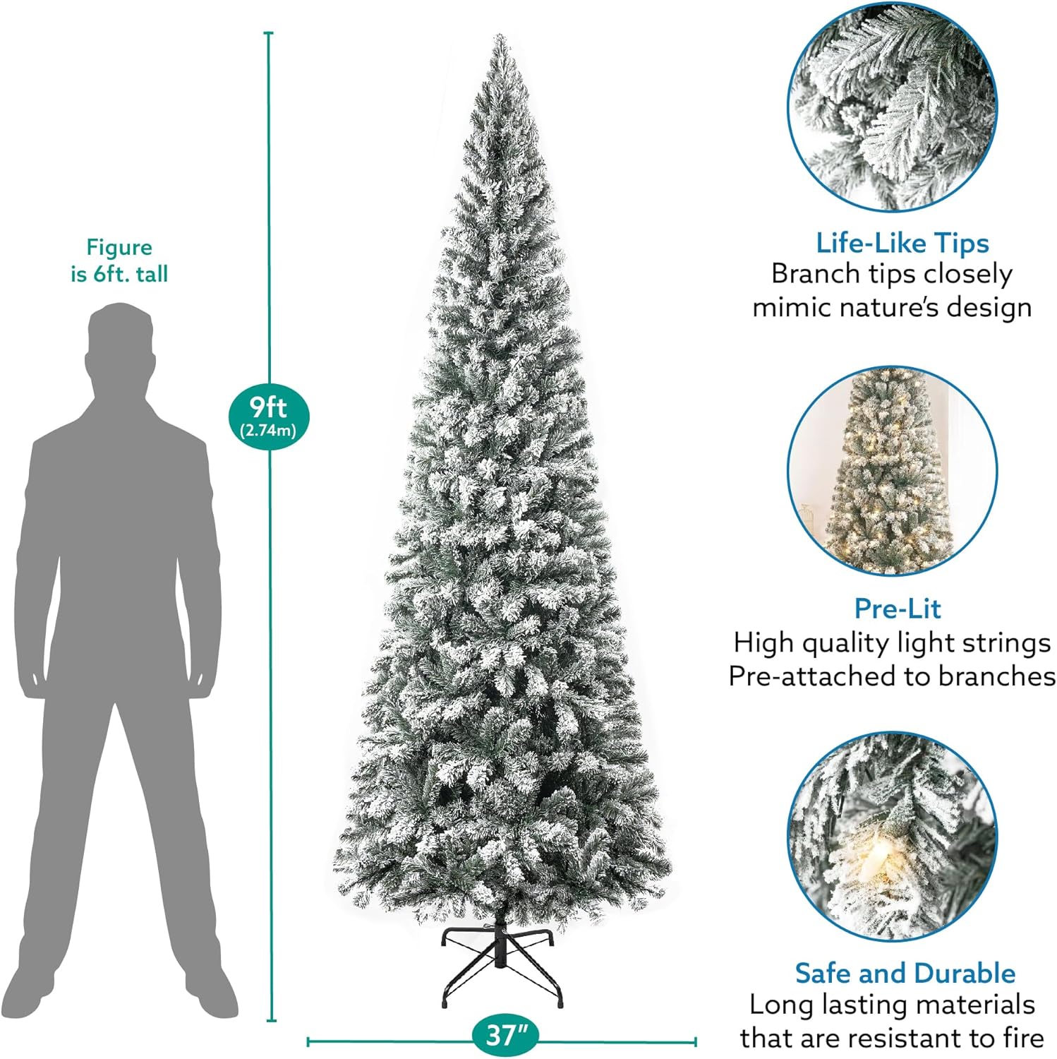 - EASY TO ASSEMBLE : Our Pencil Christmas Tree features hinged branches, making assembly and disassembly very convenient. The Branches fall easily in place for fluffing and are easy to fold back up for storage. Our Proprietary Packaging ensures the safe delivery of the Skinny christmas tree with Lights to your home. The tall skinny christmas tree frosted comes with 90 days Manufacturer's warranty and in case of any issues, you can contact our customer support for easy refunds/replacements.