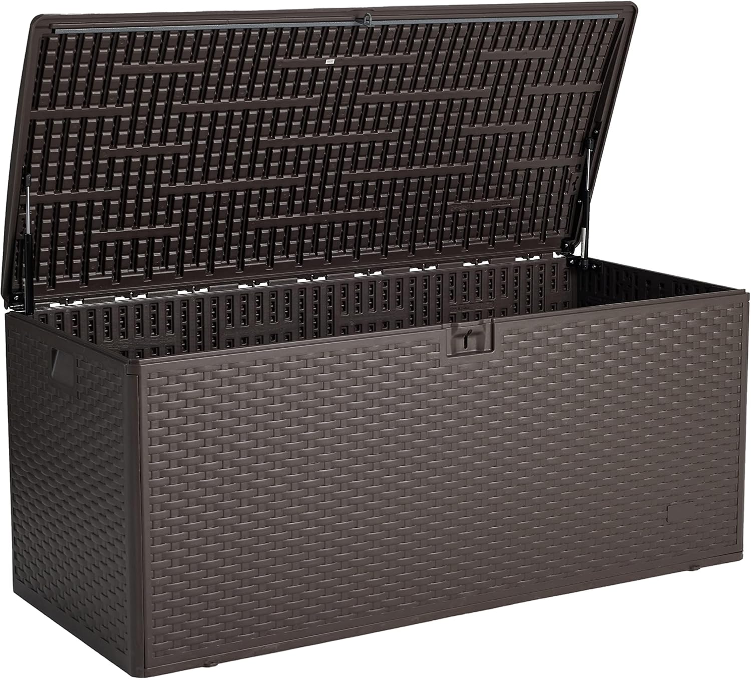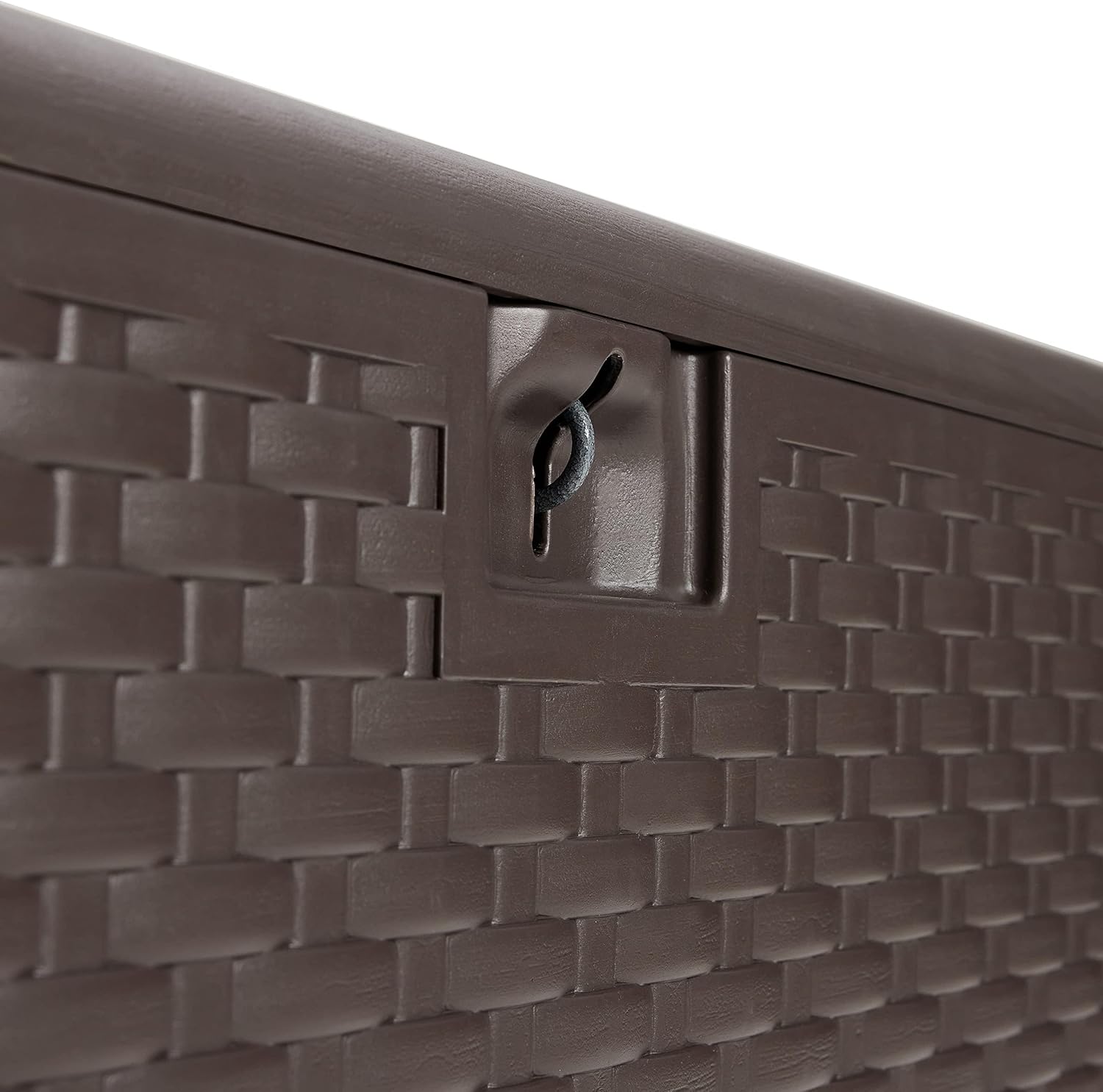 - ELEGANT STYLE: The charming wicker pattern in a brown finish complements various outdoor decors, adding a touch of sophistication to your patio storage, garden, or backyard area