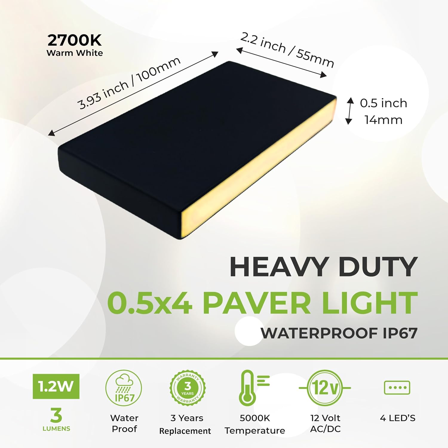 LUMENGY Paver Light Slim 0.5x4 Inch Glare-Free Steel Brick Lighting for Pavers, Walls, Driveway & Pathway Borders 2700K Warm White, Waterproof, Drive-Over Rated - 12V AC/DC