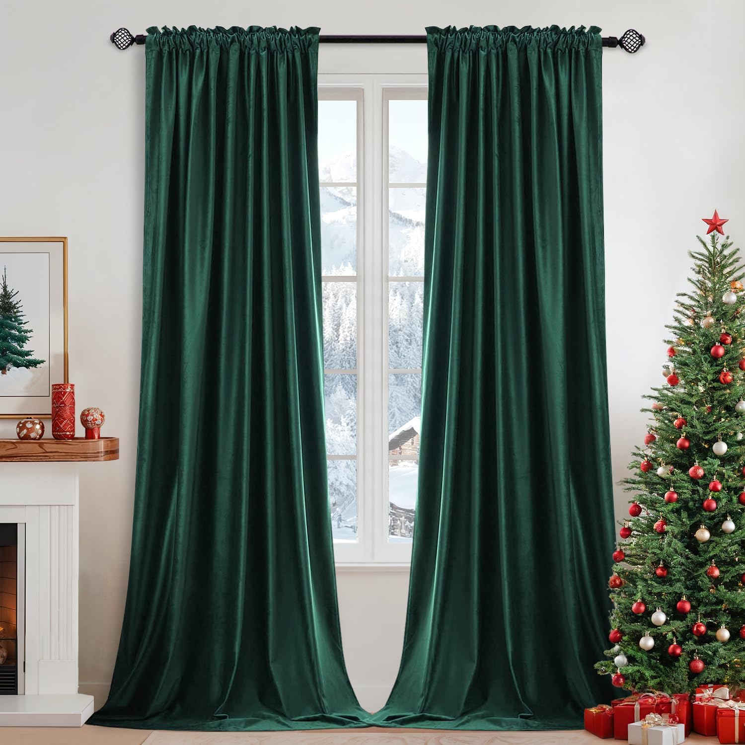 MIULEE Dark Green Velvet Curtains Thermal Insulated Blackout Curtain Christmas Emerald Green Drapes for Bedroom Living Room Darkening 84 Inches Long Curtains Panels Rod Pocket Set of 2