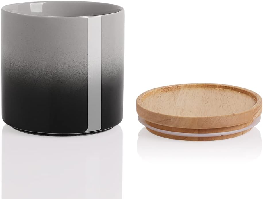 Sweejar Ceramic Food Storage Jar, Stackable Kitchen Canisters, Containers with Airtight Seal Wooden Lid for Serving Coffee Grounds, Coffee Bean, Flour, Tea, Spice and More - 39 Fl Oz (Gradient Gray)