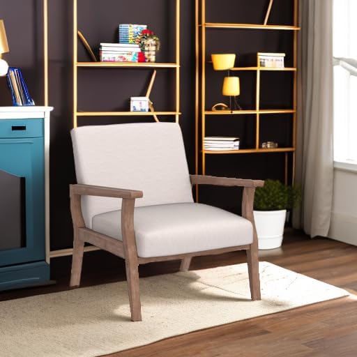 HNY Mid Century Modern Accent Chairs Set of 2 with Wood Frames, Linen Upholstered Living Room Arm Chairs for Living Room, Bedroom, Ivory