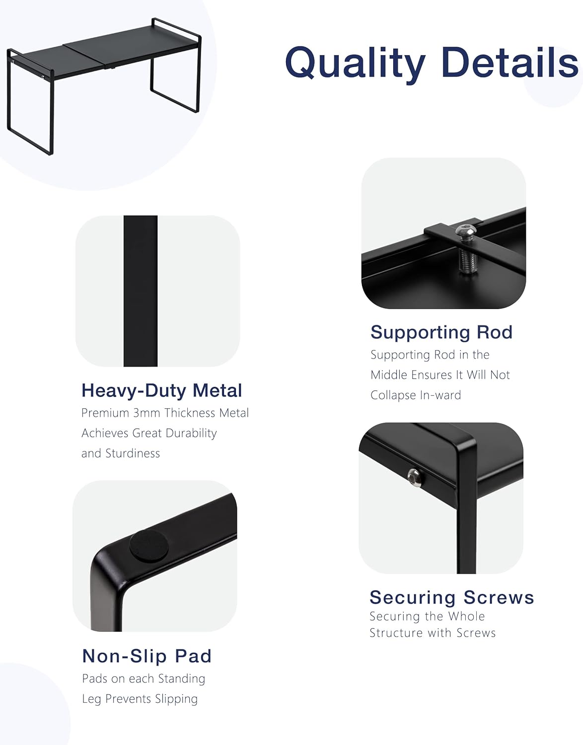 Nxconsu Expandable Cabinet Shelf Organizer Riser for Kitchen Pantry Cupboard Under Sink Countertop Home Storage Organization Rack Space Saver Freestanding Heavy Duty Nonslip Stackable Black