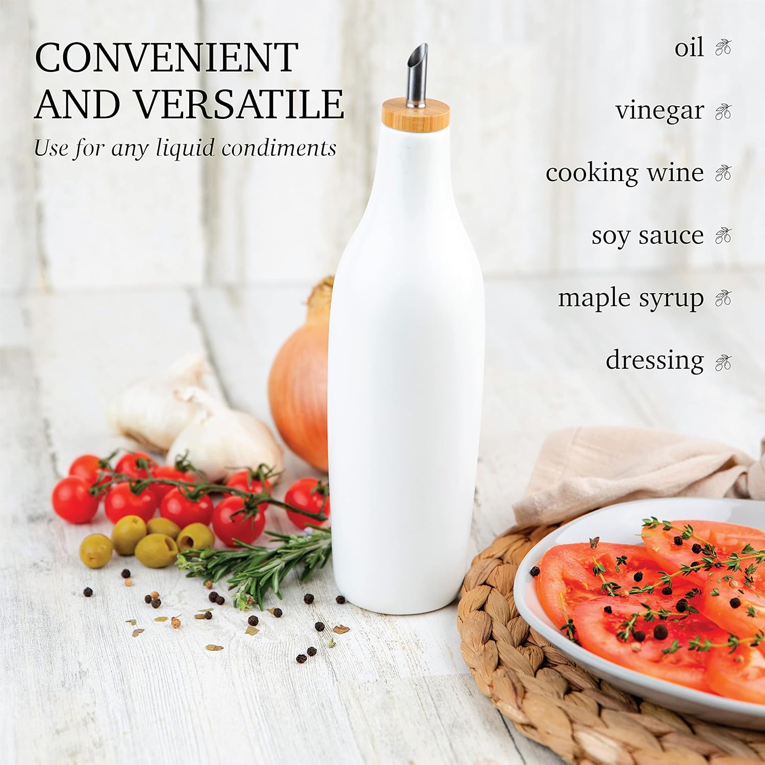 kitchentoolz Ceramic Olive Oil Dispenser Bottle - Vinegar EVOO Soy Sauce Holder - Minimalist White Kitchen Accessories - 16.9 oz Kitchen Oil Cruet Pour Bottle