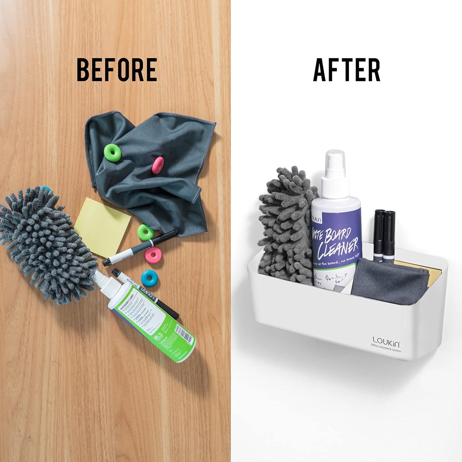 - LARGE CAPACITY: Magnetic marker holder with two partitions, holds up to 4 whiteboard erasers and 12 dry eraser markers, flexible storage according to your preference.