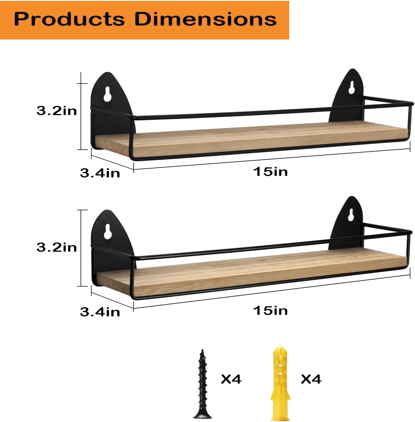 - [Dimension]: 15.3"L x 3.8"W x 3.2"H. The weight-bearing capacity of each rack is 15 lb. All accessories and instructions are provided.