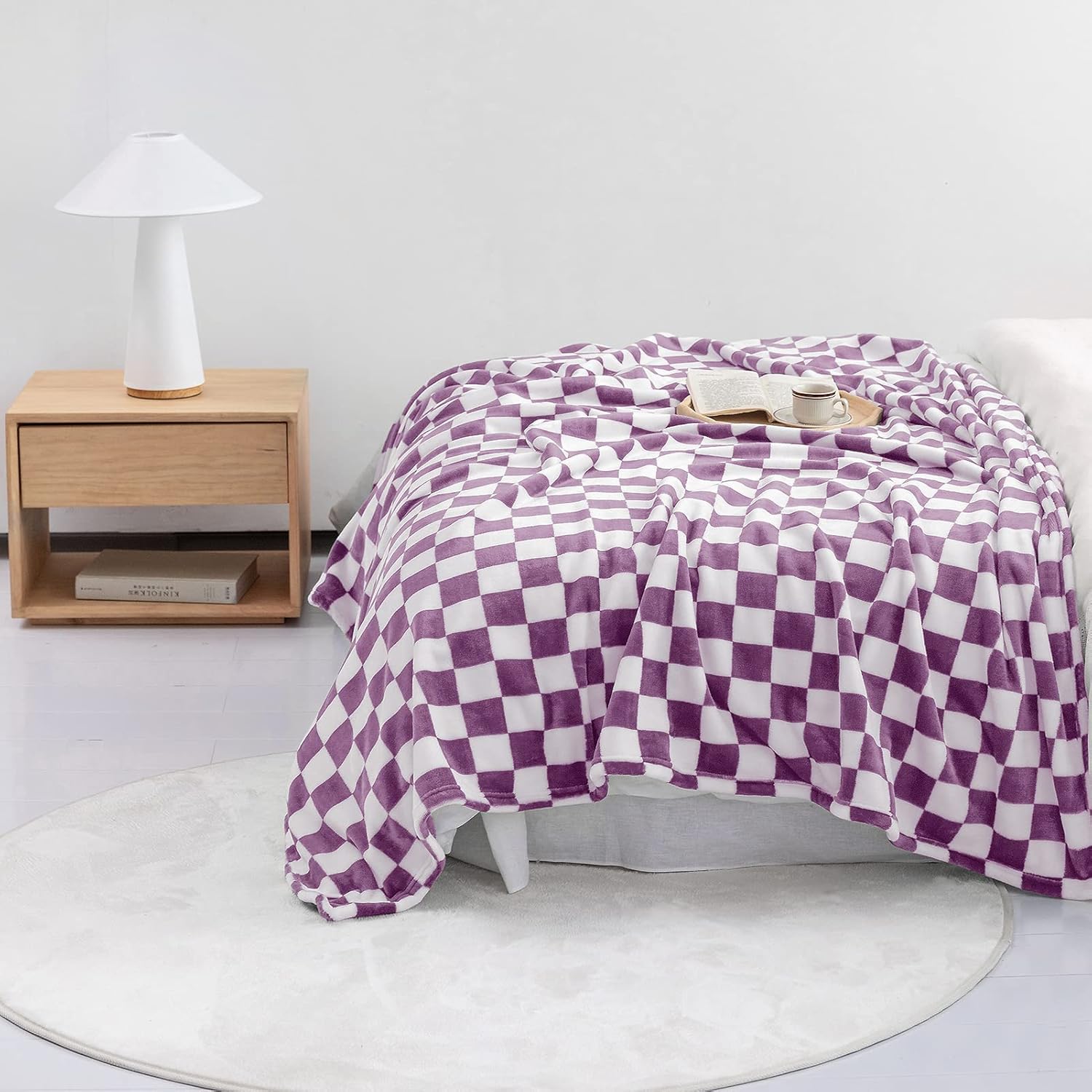 LOMAO Throw Blankets Flannel Blanket with Checkerboard Grid Pattern Soft Throw Blanket for Couch, Bed, Sofa Luxurious Warm and Cozy for All Seasons (Purple, 50"x60")
