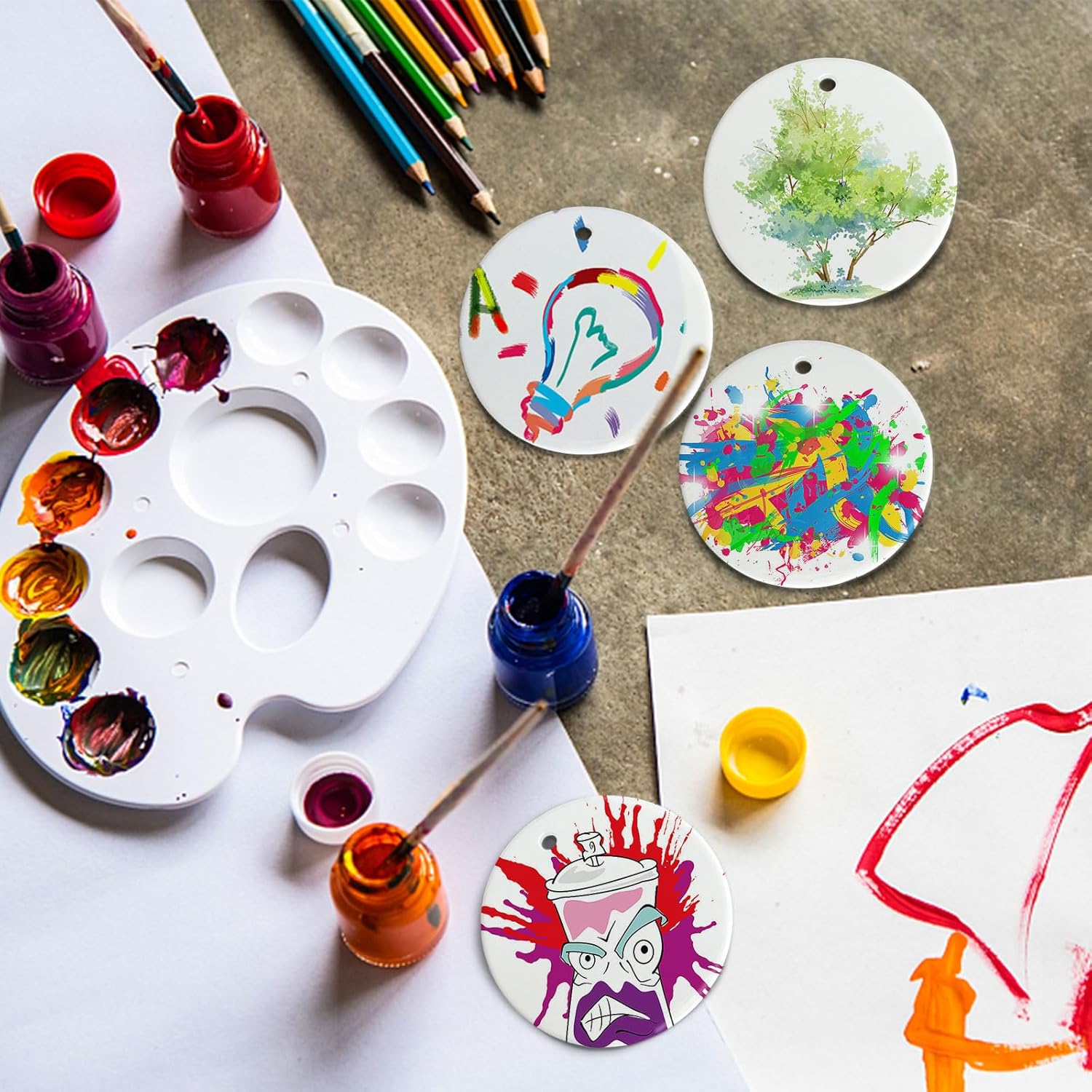 Sublimation Ceramic Ornaments - Bulk White Round Porcelain Ornament Blanks for Heat Press Printing - Personalized Xmas Tree Keepsake Crafts Gift